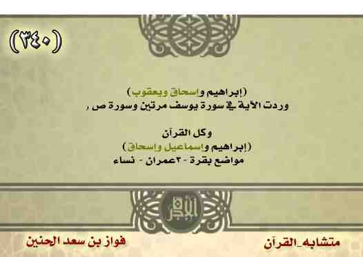 وكل القرآن (إبراهيم وإسماعيل وإسحاق) في5 مواضع بقرة 3 عمران نساء.