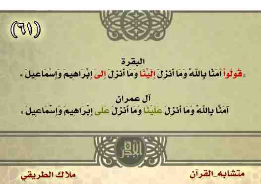 ( قُولُوا آمَنَّا بِاللَّهِ وَمَا أُنزِلَ إِلَيْنَا ) - ( قُلْ آمَنَّا بِاللَّهِ وَمَا أُنزِلَ عَلَيْنَا )