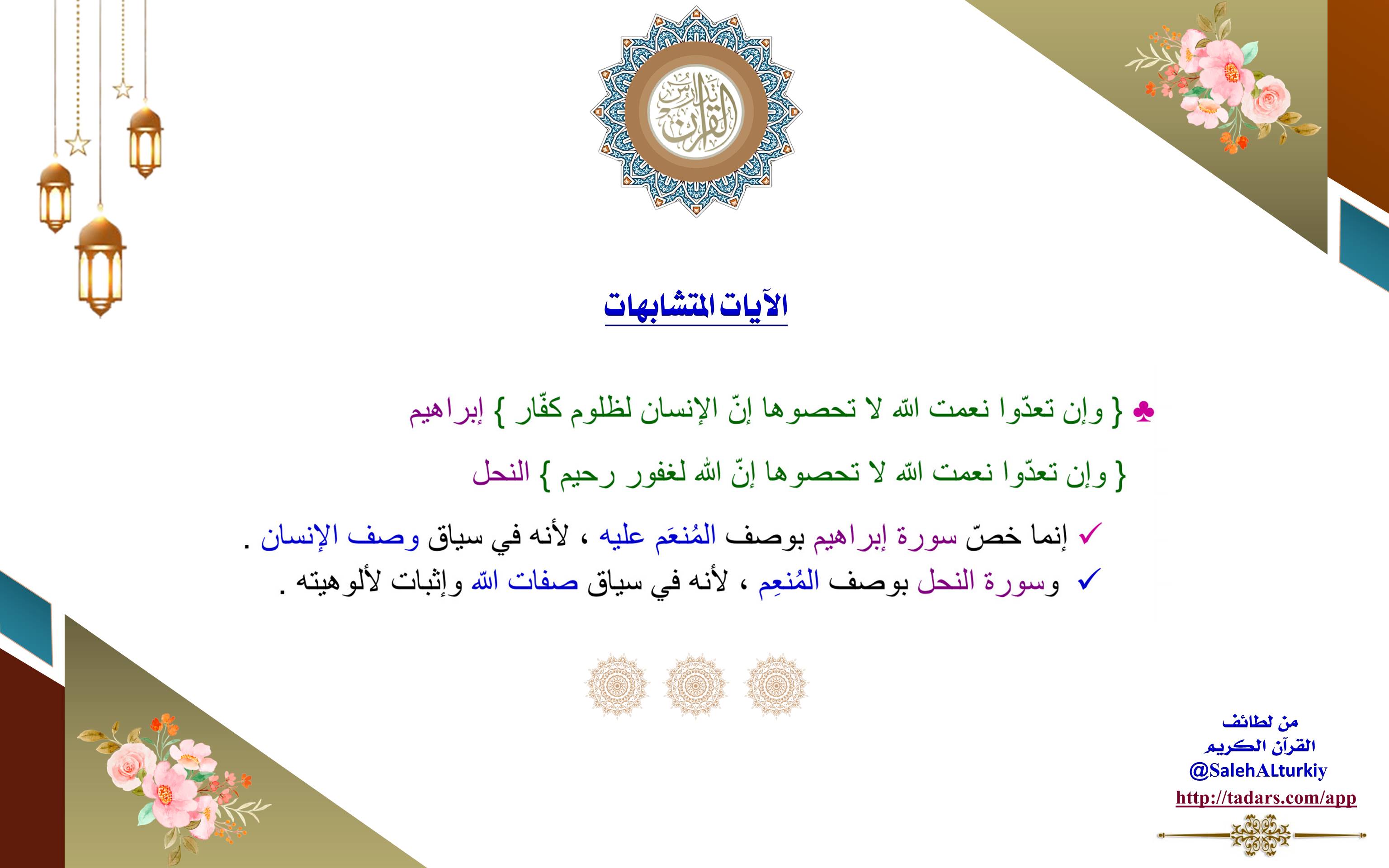 - إنما خصّ سورة إبراهيم بوصف المُنعَم عليه، لأنه في مساق وصف الإنسان.