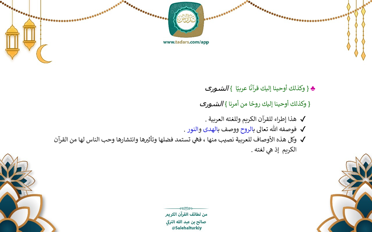 • { وكذلك أوحينا إليك قرآنًا عربيًا } الشورى