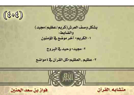 3- عظيم ، العظيم = كل القرآن في4 مواضع.