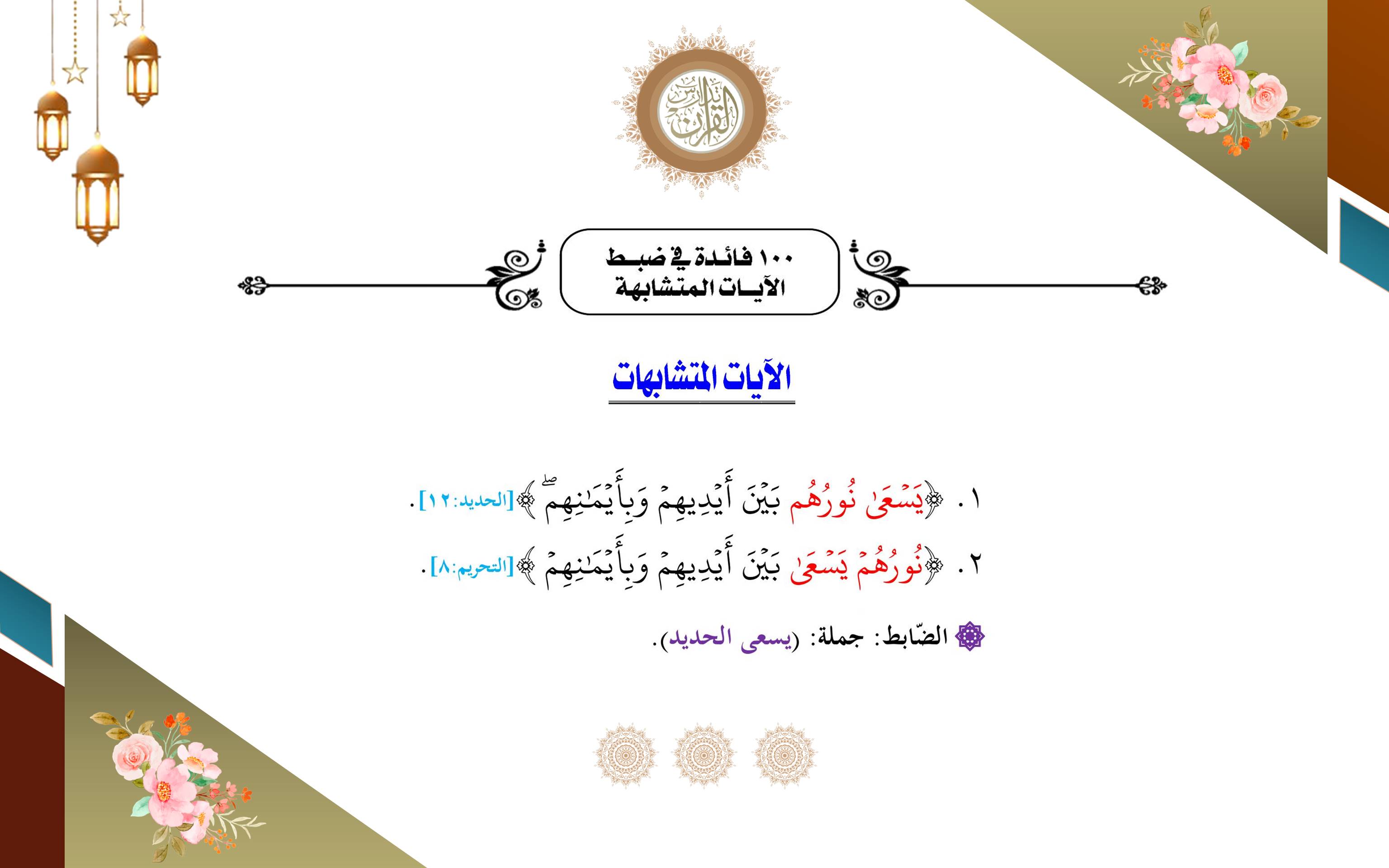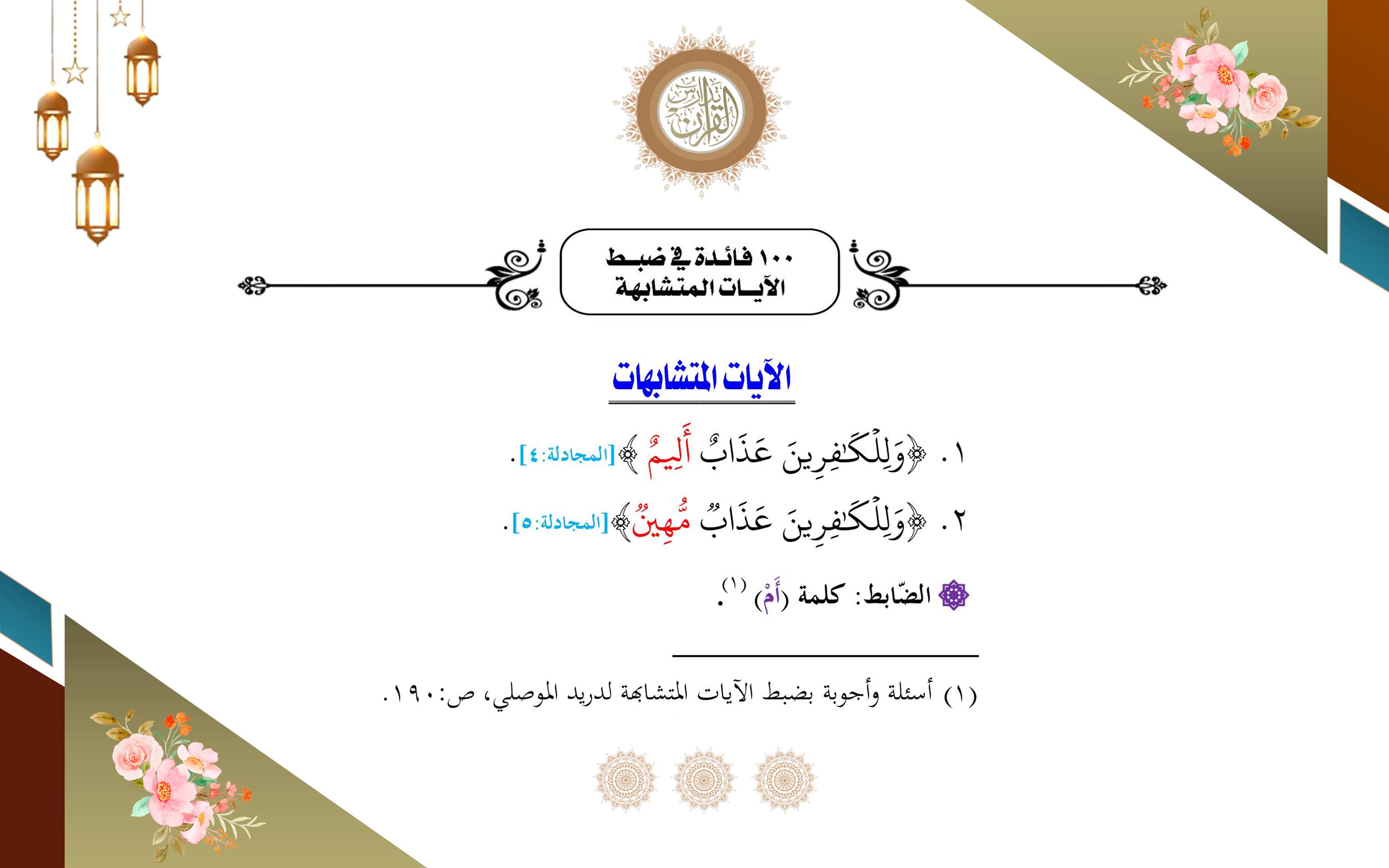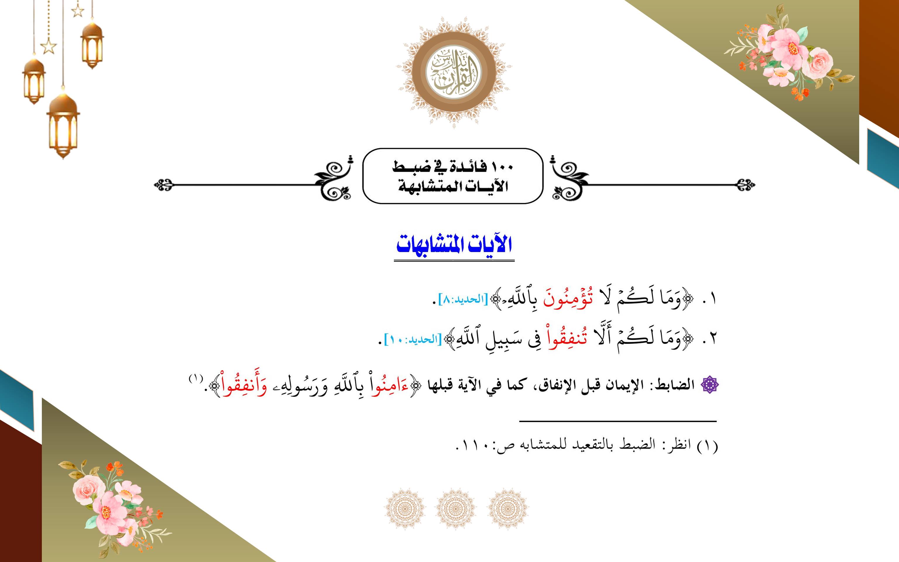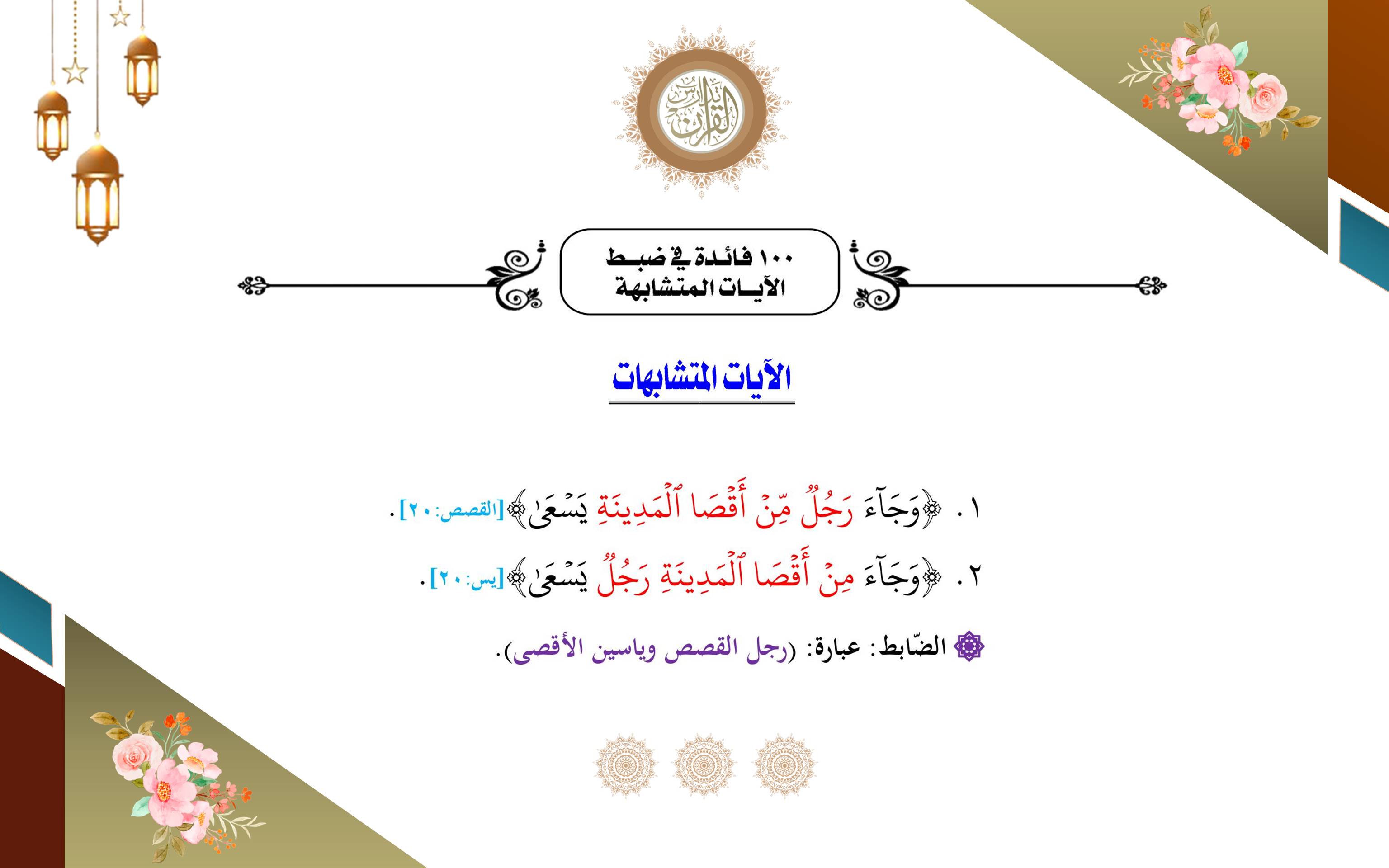 • (الضّابط): عبارة: (اعدِل يا عالم وتَذكّر يا مشرك الصّدق) وهي حسب ترتيب نهاية الآيات.