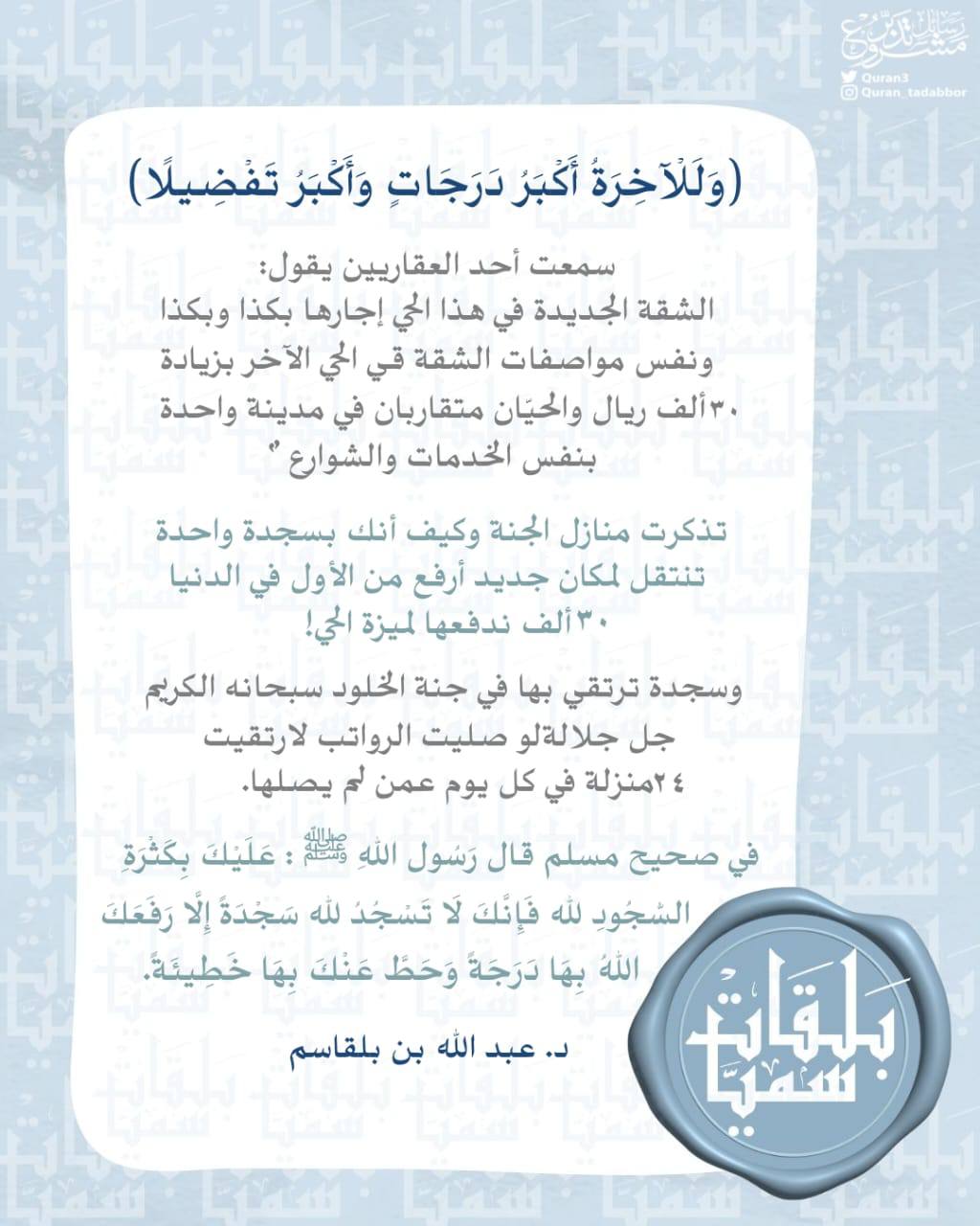تذكرت منازل الجنة وكيف أنك بسجدة واحدة تنتقل لمكان جديد أرفع من الأول في الدنيا ٣٠ ألف ندفعها لميزة الحي!