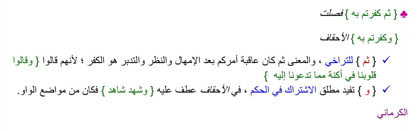 - ثم ( للتراخي ) ، والمعنى ثم كان عاقبة أمركم بعد الإمهال والنظر والتدبر هو الكفر ؛ لأنهم قالوا ( وقالوا قلوبنا في أكنة مما تدعونا إليه ) .