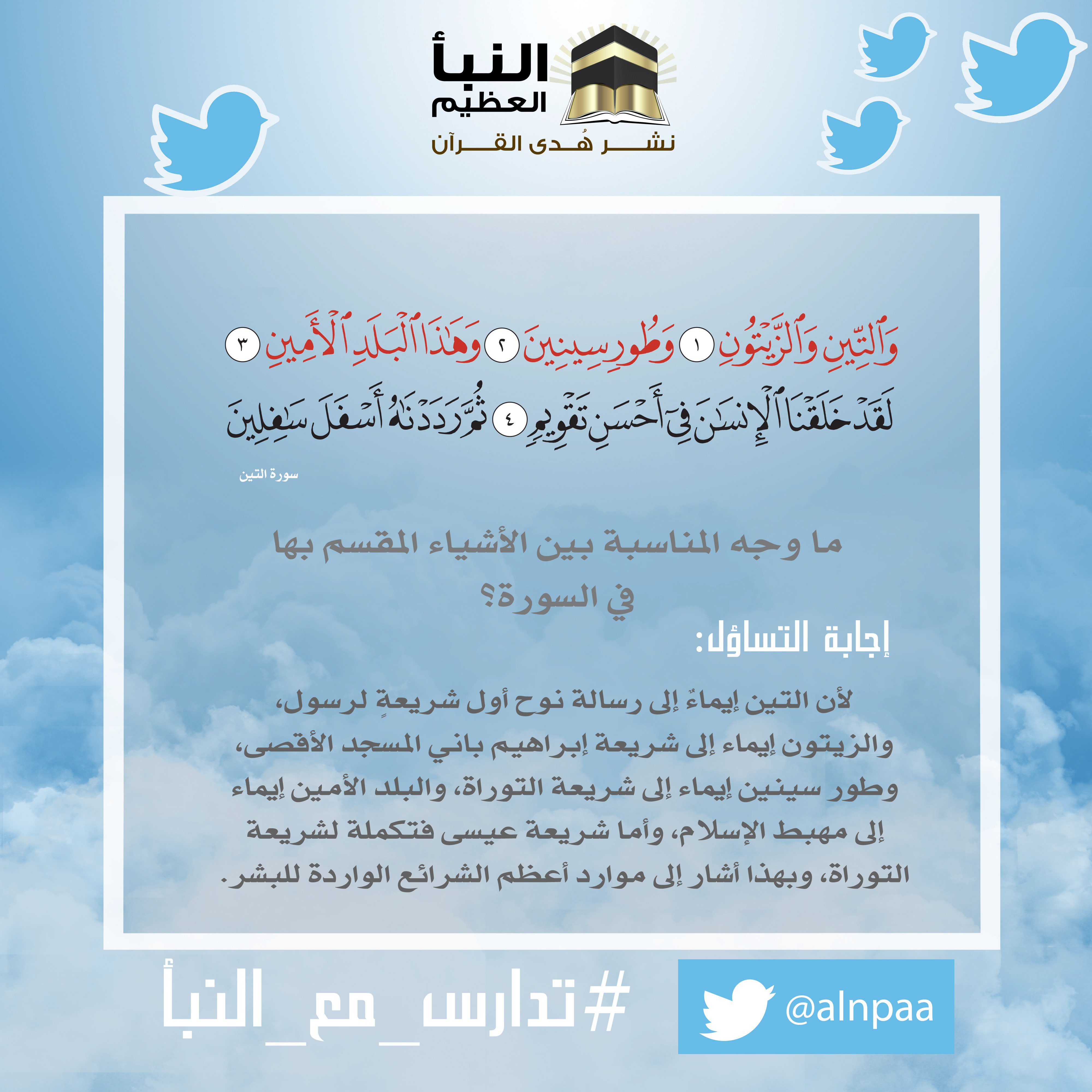 • إجابة التساؤل: لأن التين إيماء إلى رسالة نوح أول شريعة لرسول، والزيتون إيماء إلى شريعة إبراهيم باني المسجد الأقصى، وطور سينين إيماء إلى شريعة التوراة، والبلد الأمين إيماء إلى مهبط الإسلام، وأما شريعة عيسى فتكملة لشريعة التوراة، وبهذا أشار إلى موارد أعظم الشرائع الواردة للبشر.