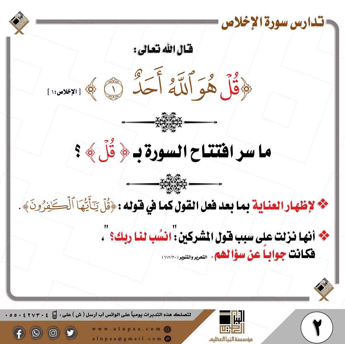 • التساؤل: قال تعالى: ﴿قُلْ هُوَ اللَّهُ أَحَدٌ﴾ ما سر افتتاح السورة بـ (قُلْ)؟