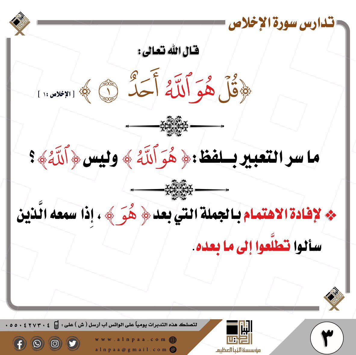• التساؤل: قال تعالى: ﴿قُلْ هُوَ اللَّهُ أَحَدٌ﴾ ما سر التعبير بلفظ: (هُوَ اللَّهُ) وليس (اللَّهُ)؟