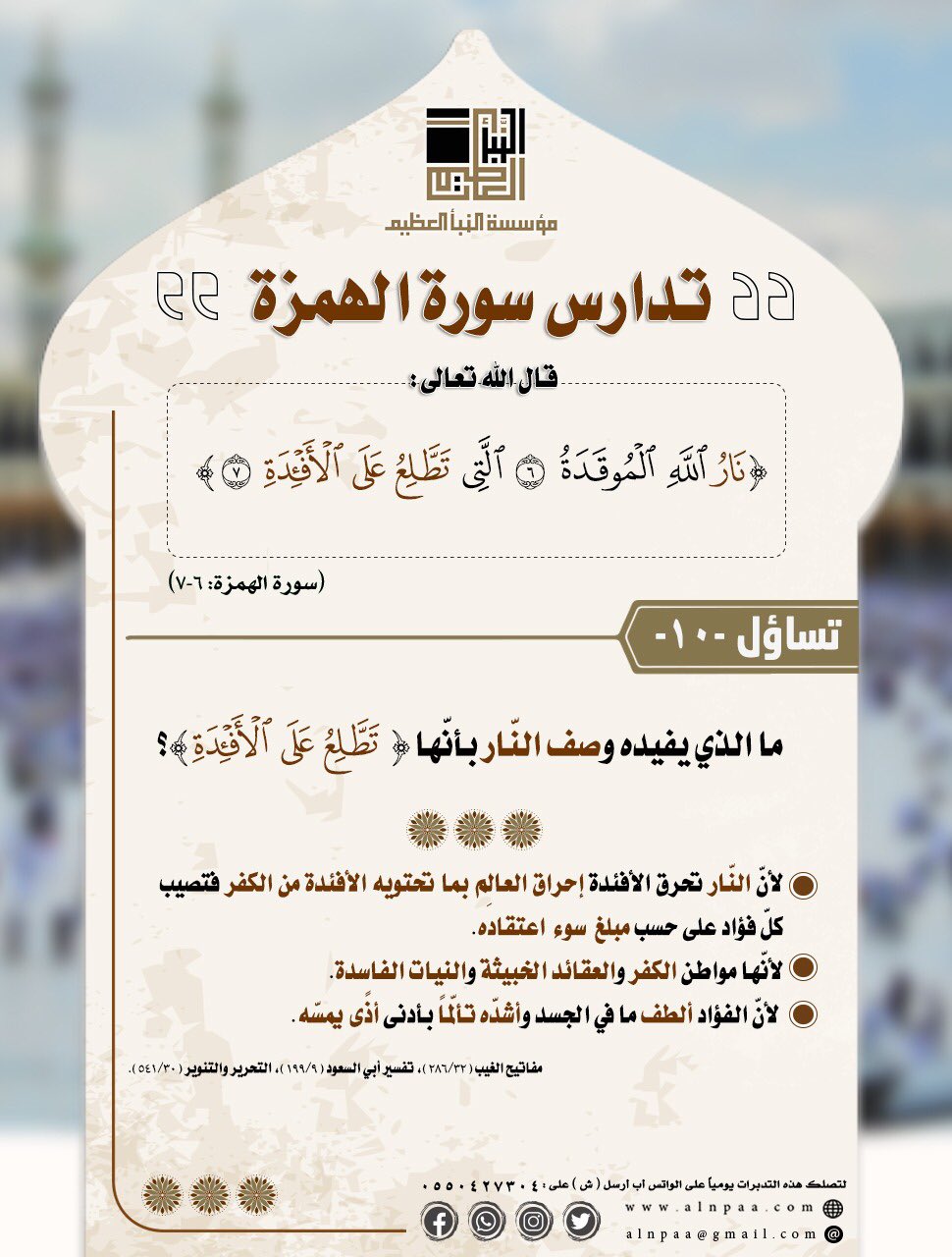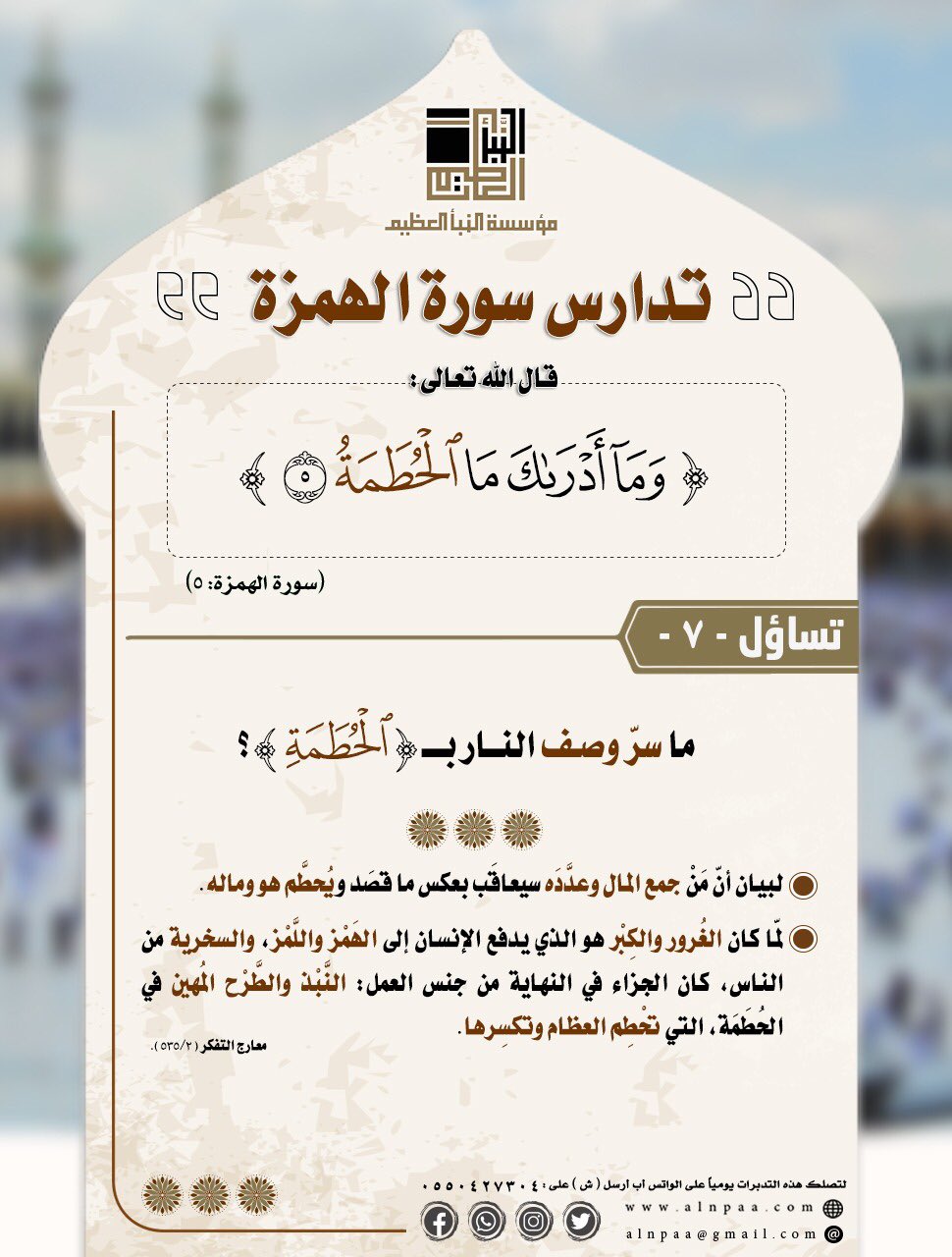 ▪️ التساؤل: قال الله تعالى: ﴿وَمَا أَدْرَاكَ مَا الْحُطَمَةُ﴾ ما سرّ وصف النار بـ (الْحُطَمَةِ)؟