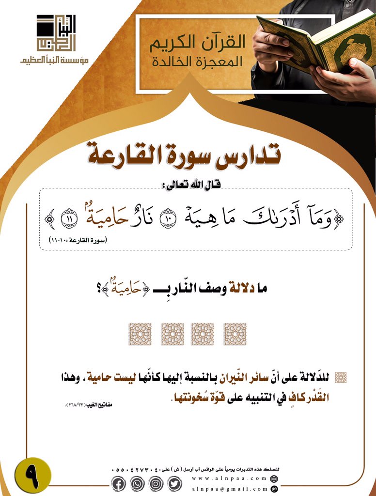 ▪️ التساؤل: قال الله تعالى: ﴿نَارٌ حَامِيَةٌ﴾ ما دلالة وصف النّار بِــ (حَامِيَةٌ)؟