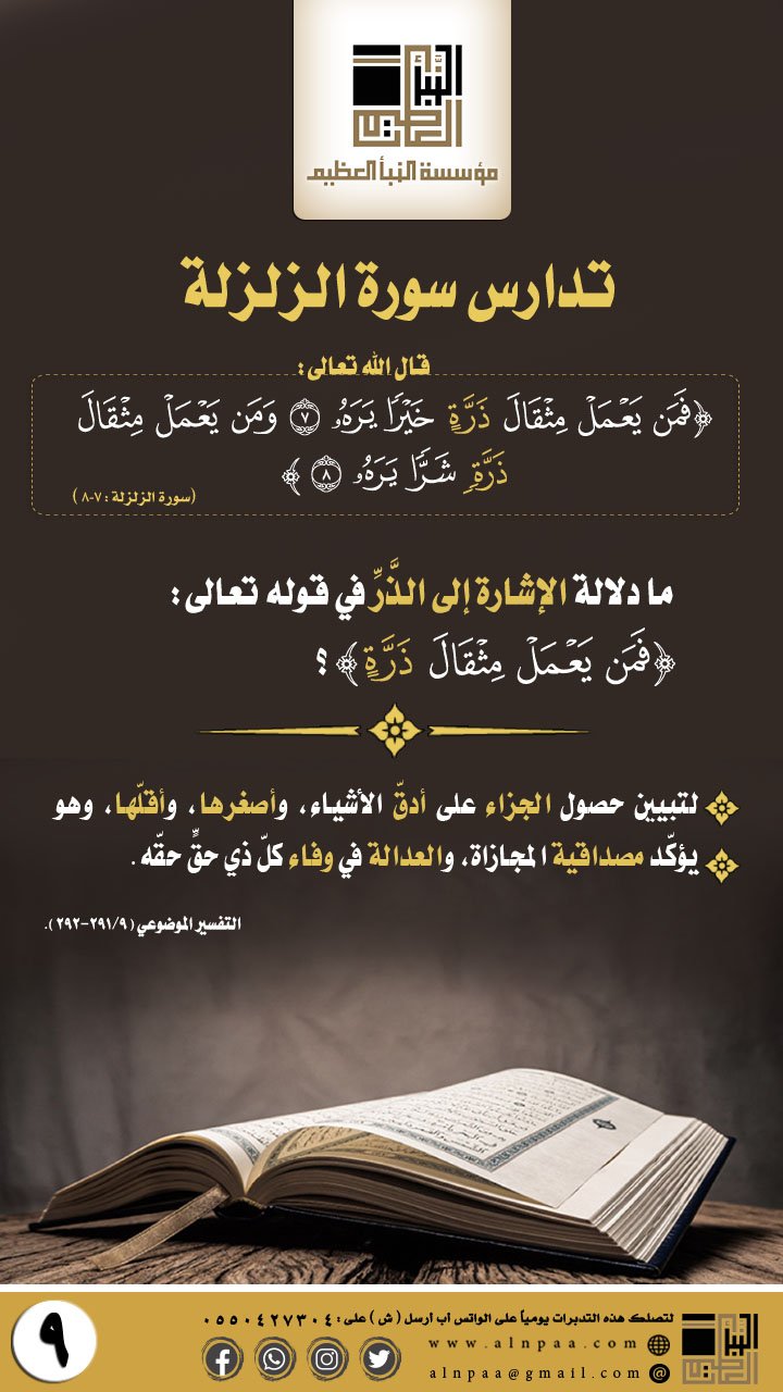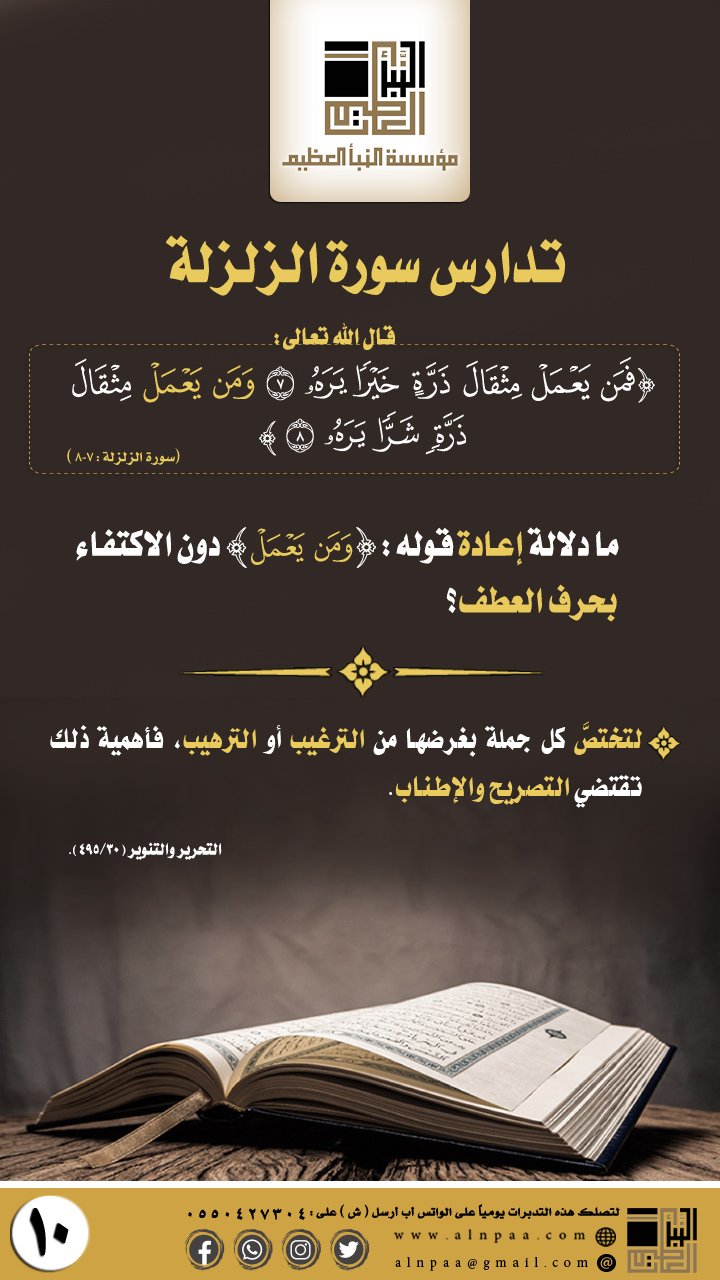 ▪️ التساؤل: قال الله تعالى: ﴿وَمَن يَعْمَلْ مِثْقَالَ ذَرَّةٍ شَرًّا يَرَهُ﴾ ما دلالة إعادة قوله: (وَمَن يَعْمَلْ) دون الاكتفاء بحرف العطف؟