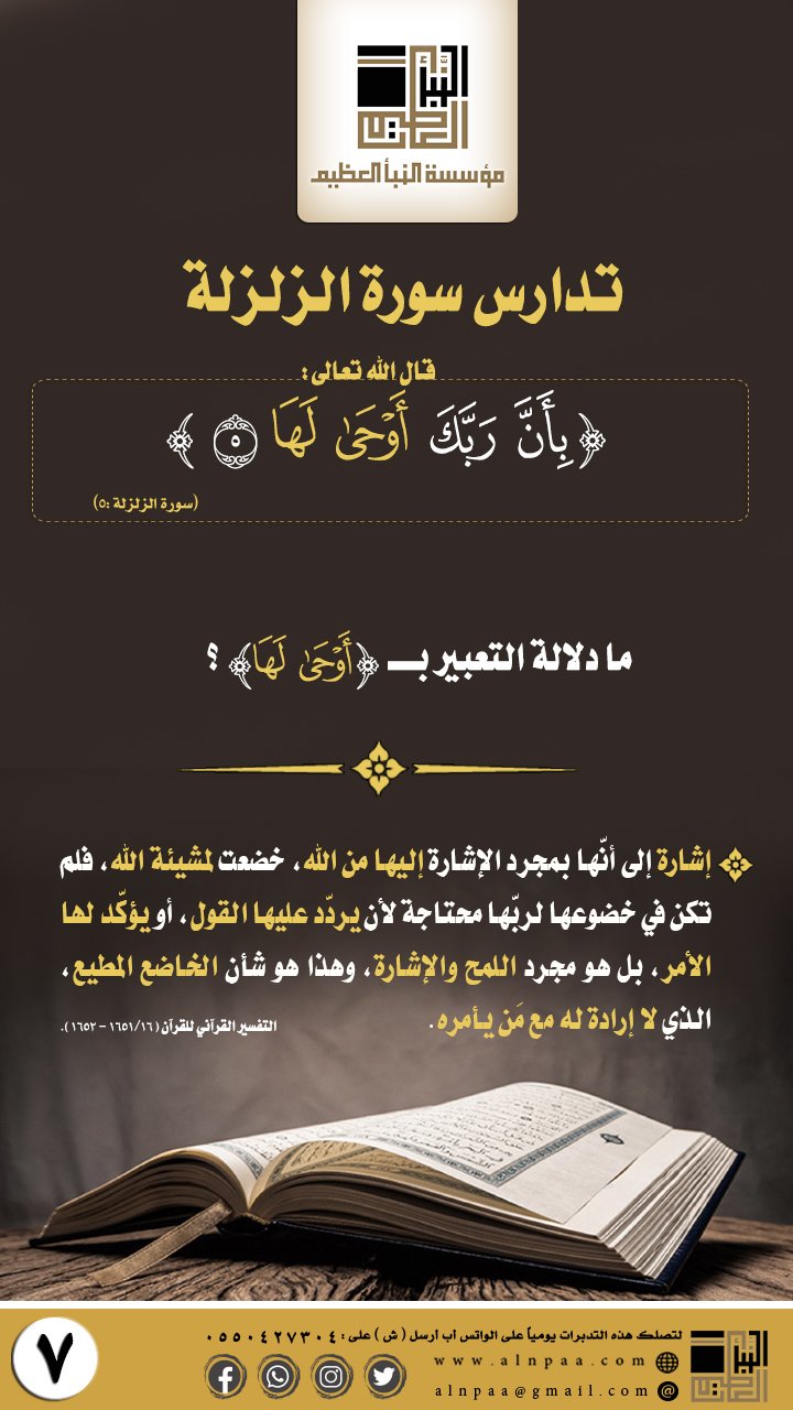 ▪️ التساؤل: قال الله تعالى: ﴿بِأَنَّ رَبَّكَ أَوْحَى لَهَا﴾ ما دلالة التعبير بـ (أَوْحَى لَهَا)؟