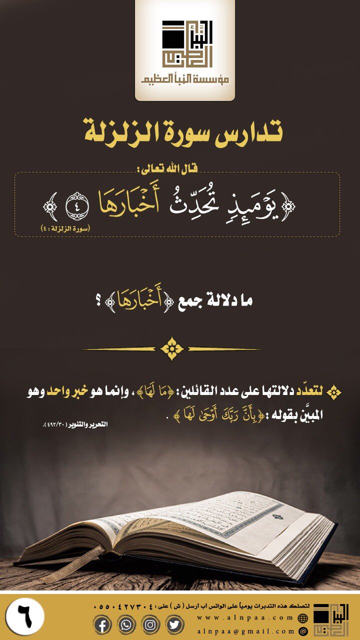 ▪️ التساؤل: قال الله تعالى: ﴿يَوْمَئِذٍ تُحَدِّثُ أَخْبَارَهَا﴾ ما دلالة جمع (أَخْبَارَهَا)؟