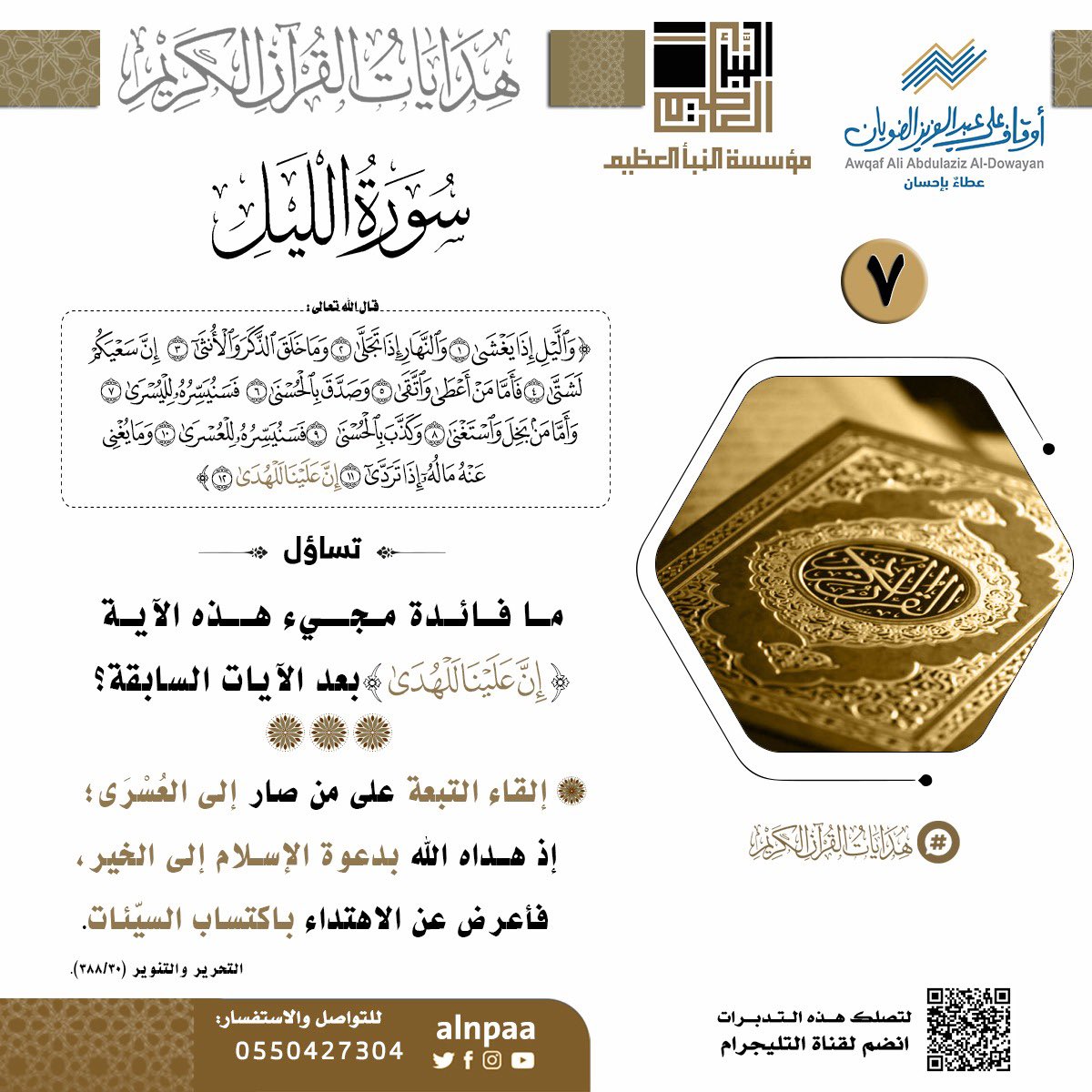 • التساؤل: قال الله تعالى: ﴿إِنَّ عَلَيْنَا لَلْهُدَى﴾ ما فائدة مجيء هذه الآية (إِنَّ عَلَيْنَا لَلْهُدَى) بعد الآيات السابقة؟