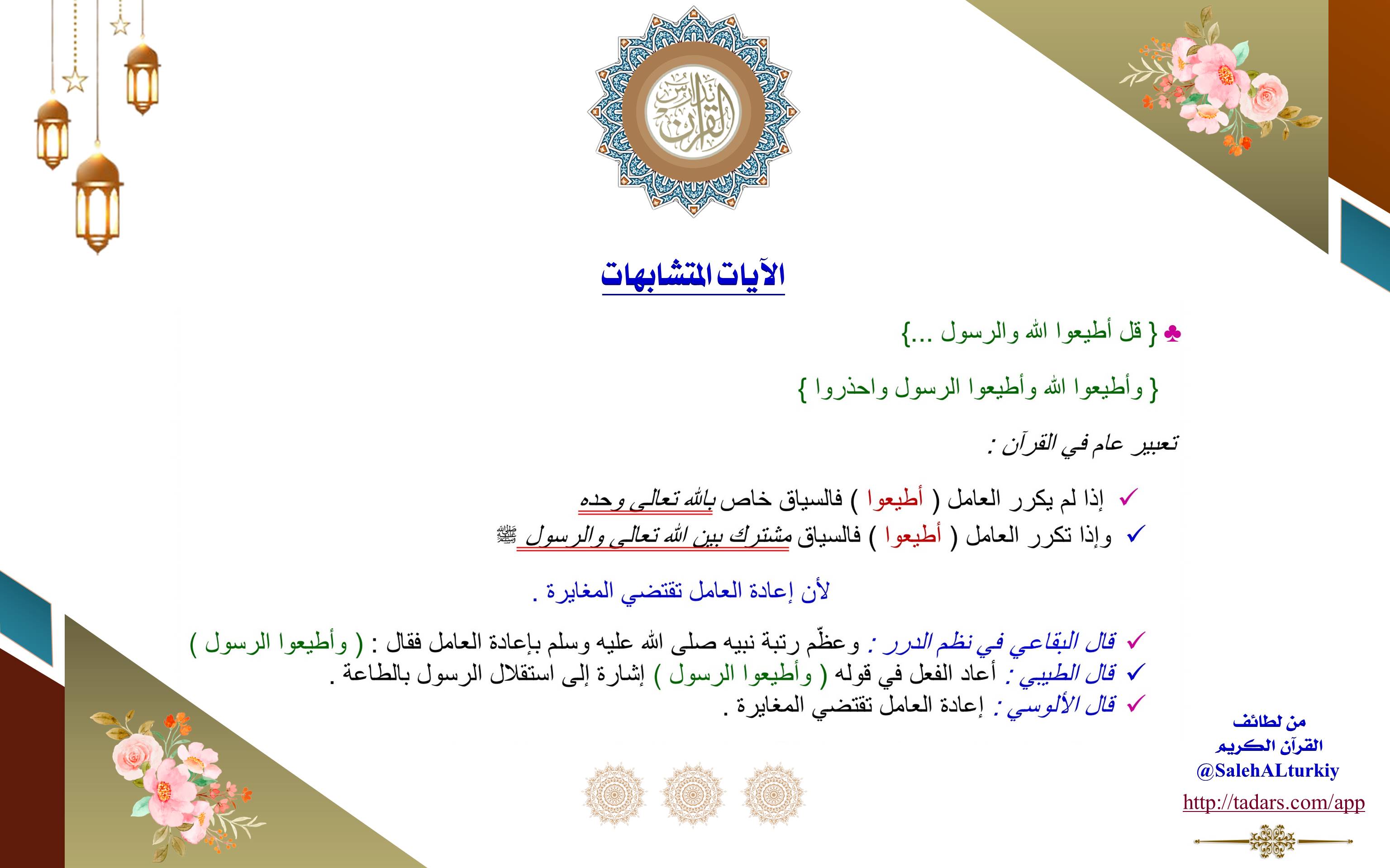 • وإذا تكرر العامل (أطيعوا) فالسياق مشترك بين الله تعالى والرسول (ﷺ).