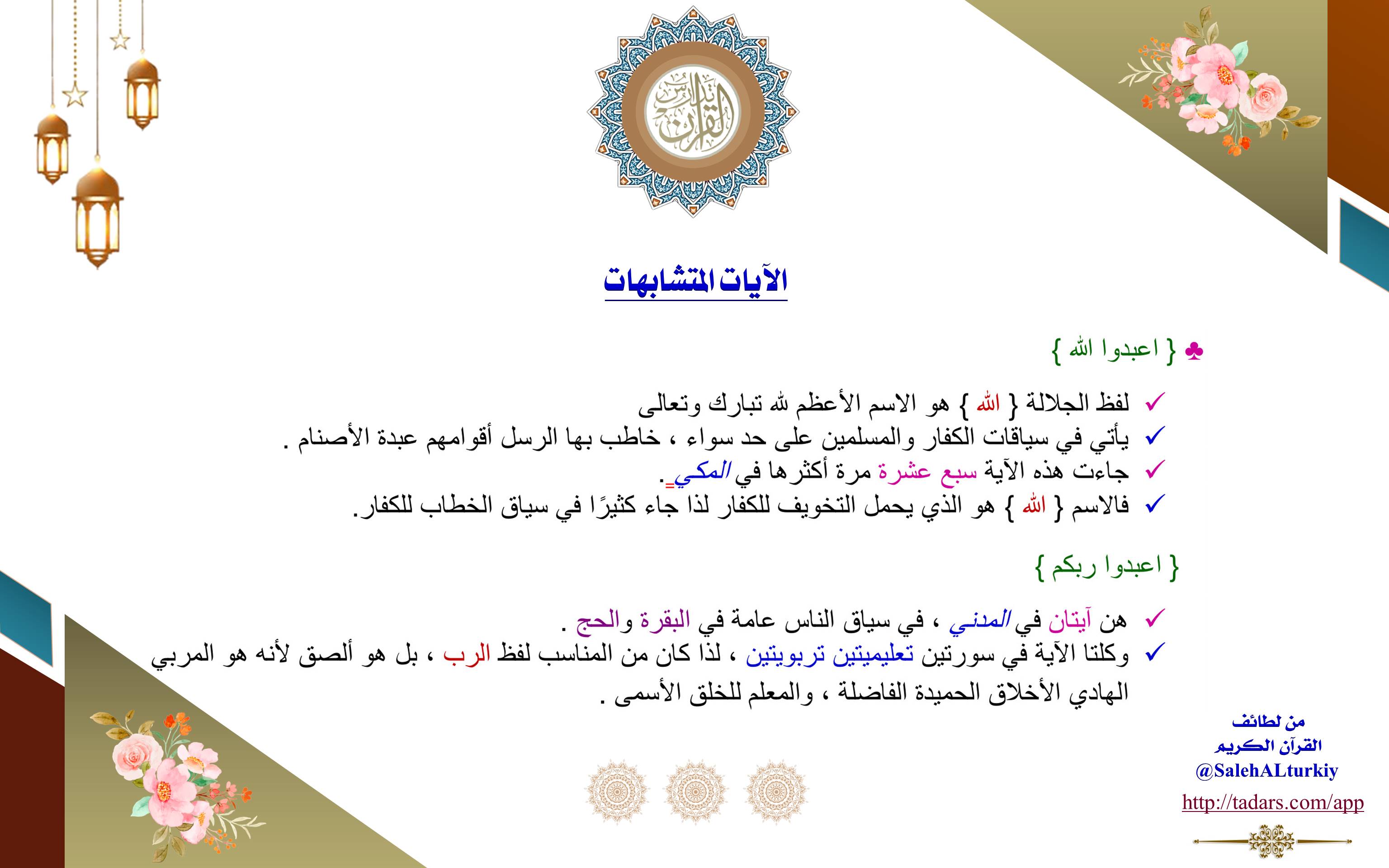 هن آيتان في المدني، في سياق الناس عامة في البقرة والحج وكلتا الآية في سورتين تعليميتين تربويتين، لذا كان من المناسب لفظ (الرب)، بل هو ألصق لأنه هو المربي الهادي الأخلاق الحميدة الفاضلة، والمعلم للخلق الأسمى.