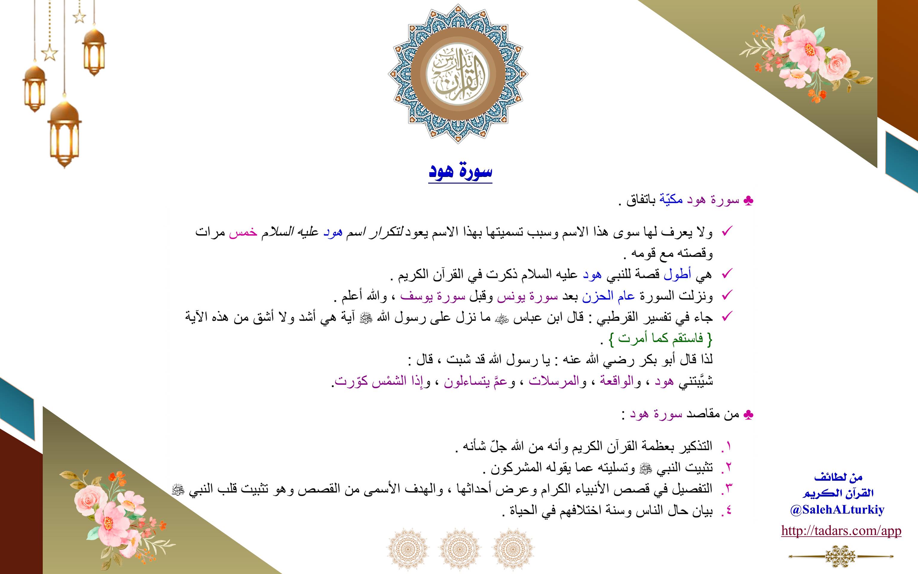 ونزلت السورة عام الحزن بعد سورة يونس وقبل سورة يوسف، والله أعلم .