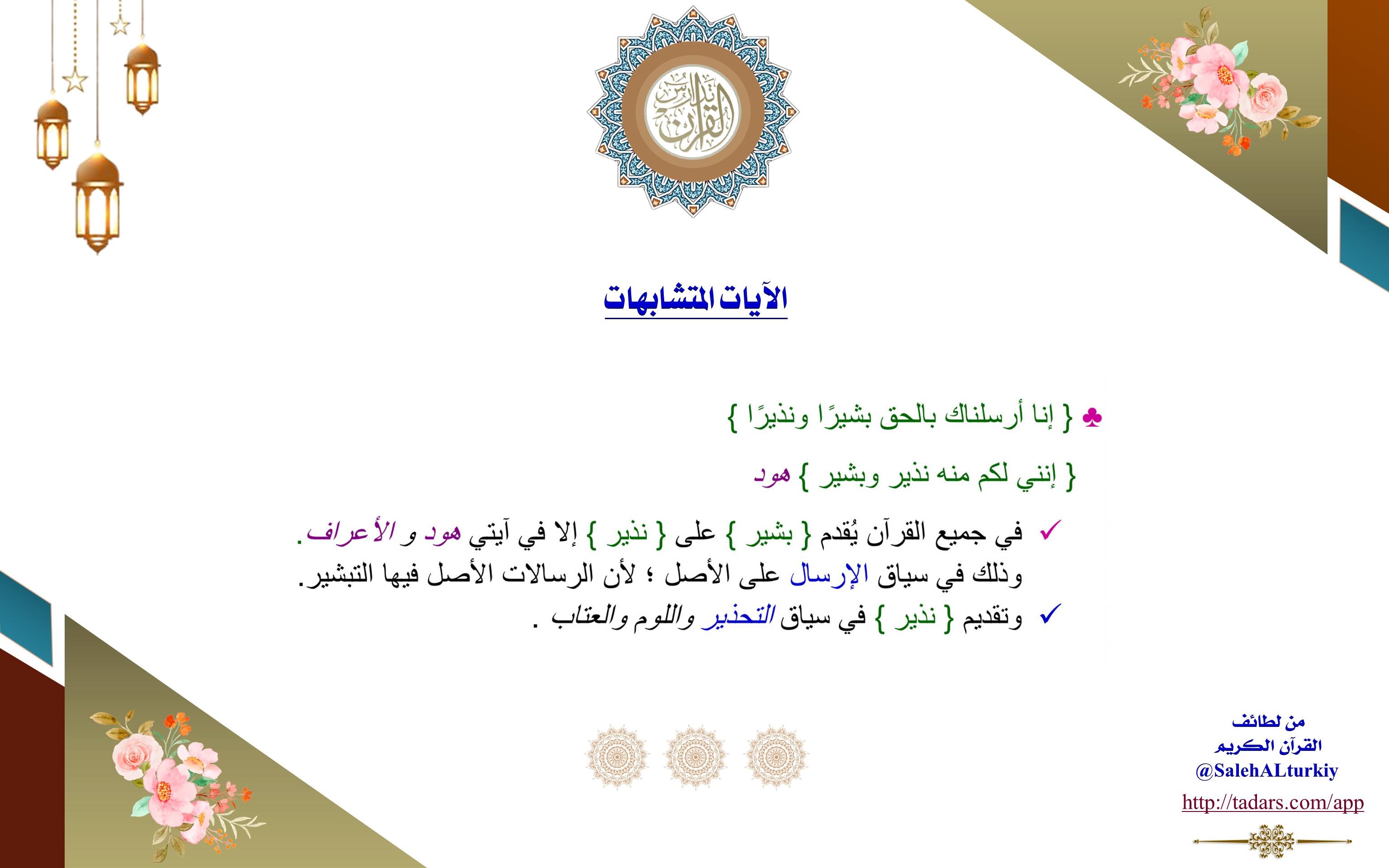 في جميع القرآن يُقدم {بشير} على {نذير} إلا في آيتي هود والأعراف.