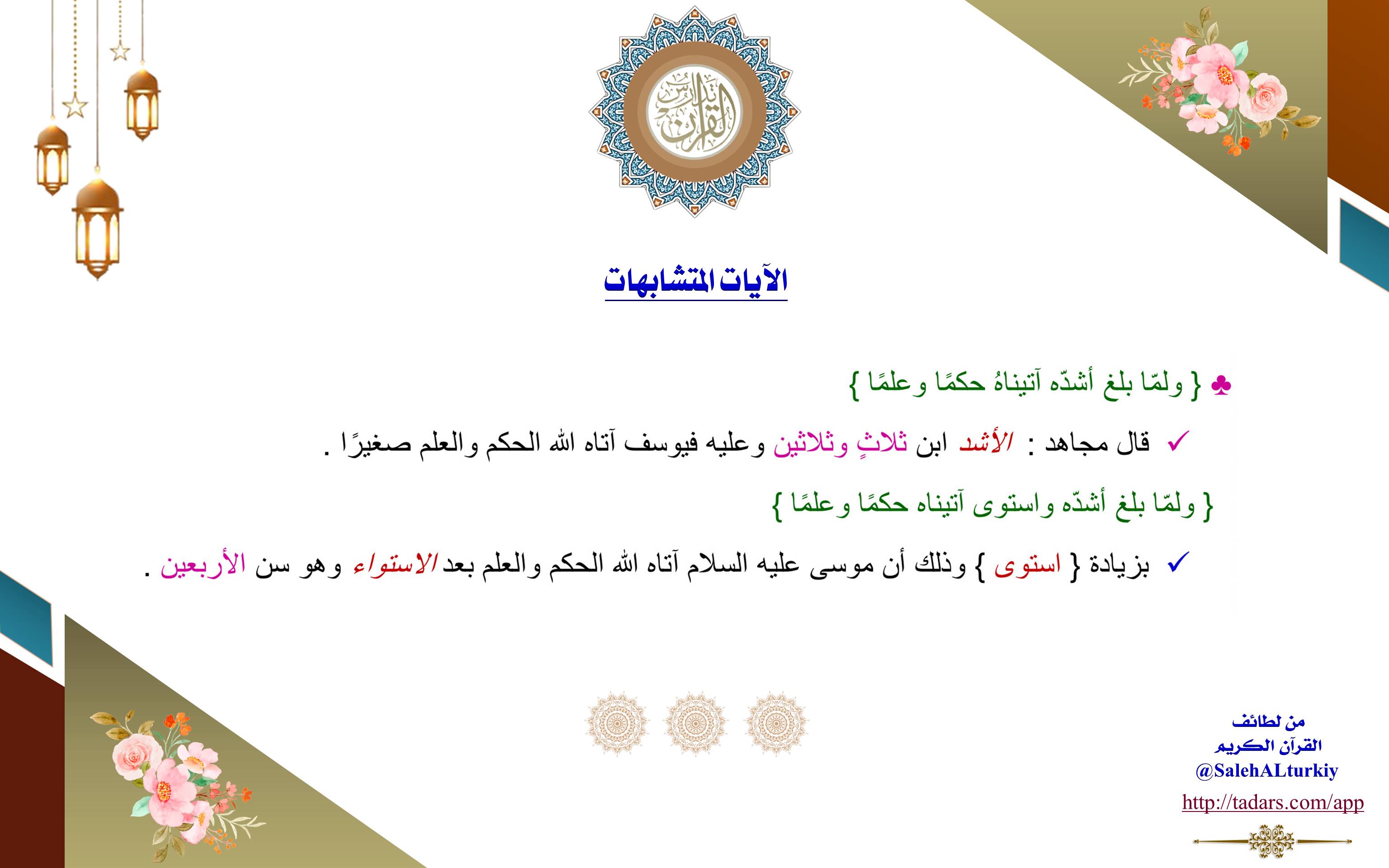 ﴿وَلَمَّا بَلَغَ أَشُدَّهُ آتَيْنَاهُ حُكْمًا وَعِلْمًا﴾