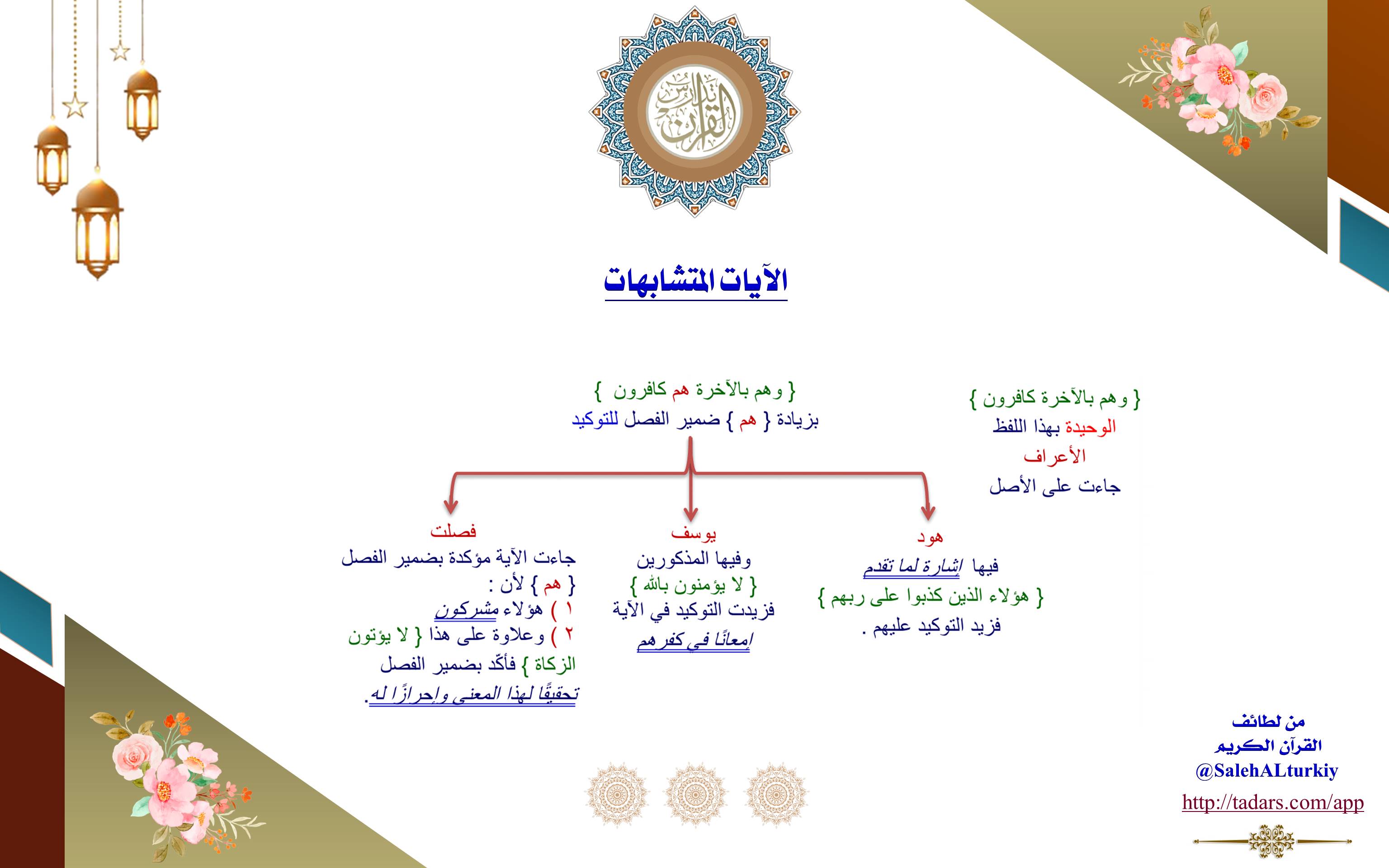 • آية فصّلت جاءت مؤكدة بضمير الفصل {هم} لأن هؤلاء مشركون، وعلاوة على هذا (لَا يُؤْتُونَ الزَّكَاةَ) فأكّد بضمير الفصل تحقيقًا لهذا المعنى وإحرازًا له.