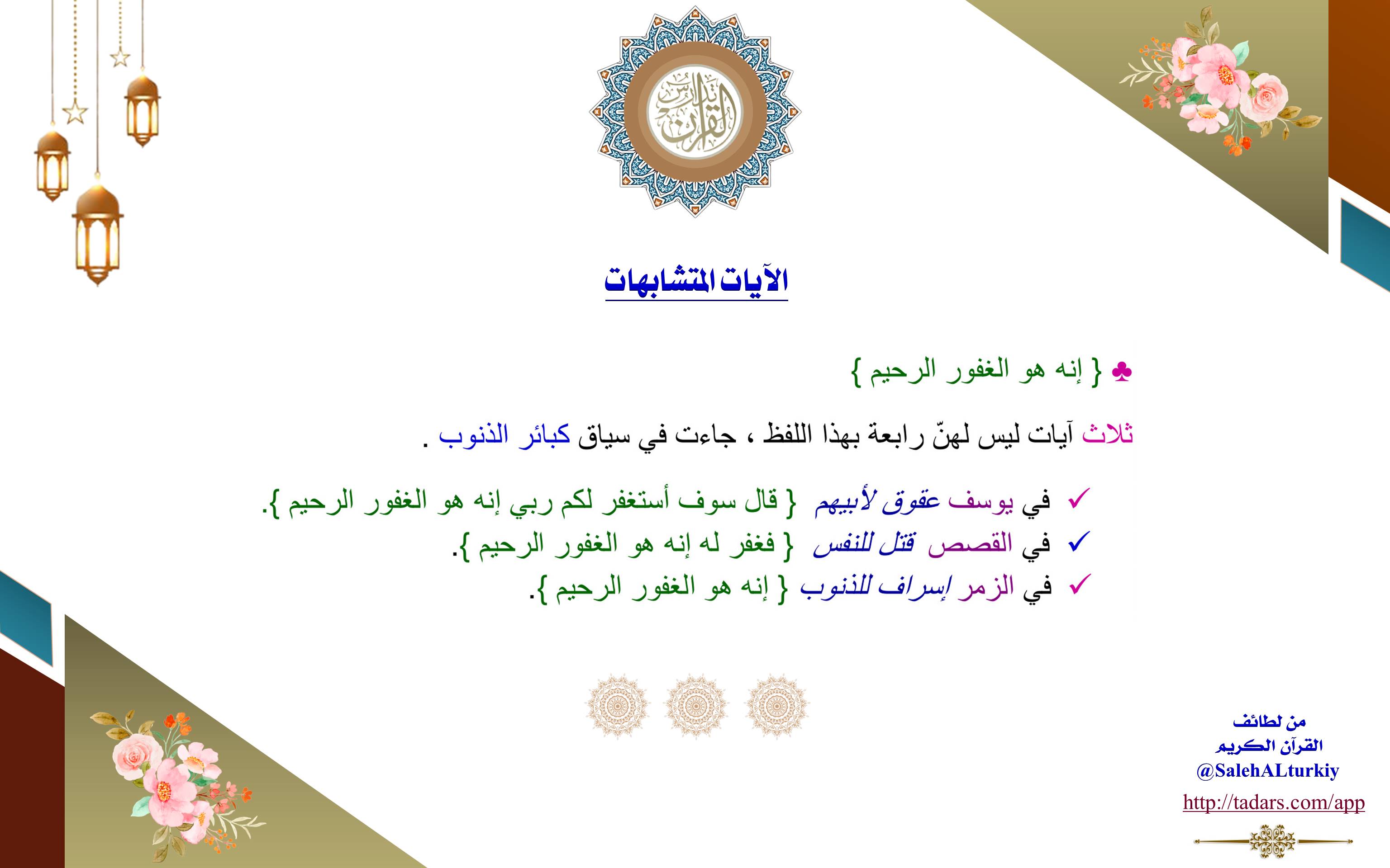 في (الزمر): إسراف للذنوب .. (إِنَّهُ هُوَ الْغَفُورُ الرَّحِيمُ).