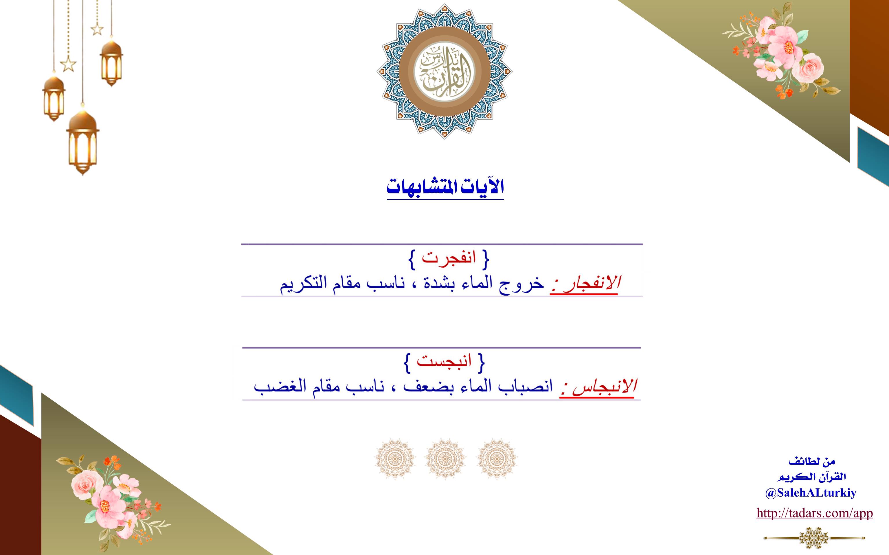 {انبجست} الانبجاس: انصباب الماء بضعف، ناسب مقام الغضب في (الأعراف).