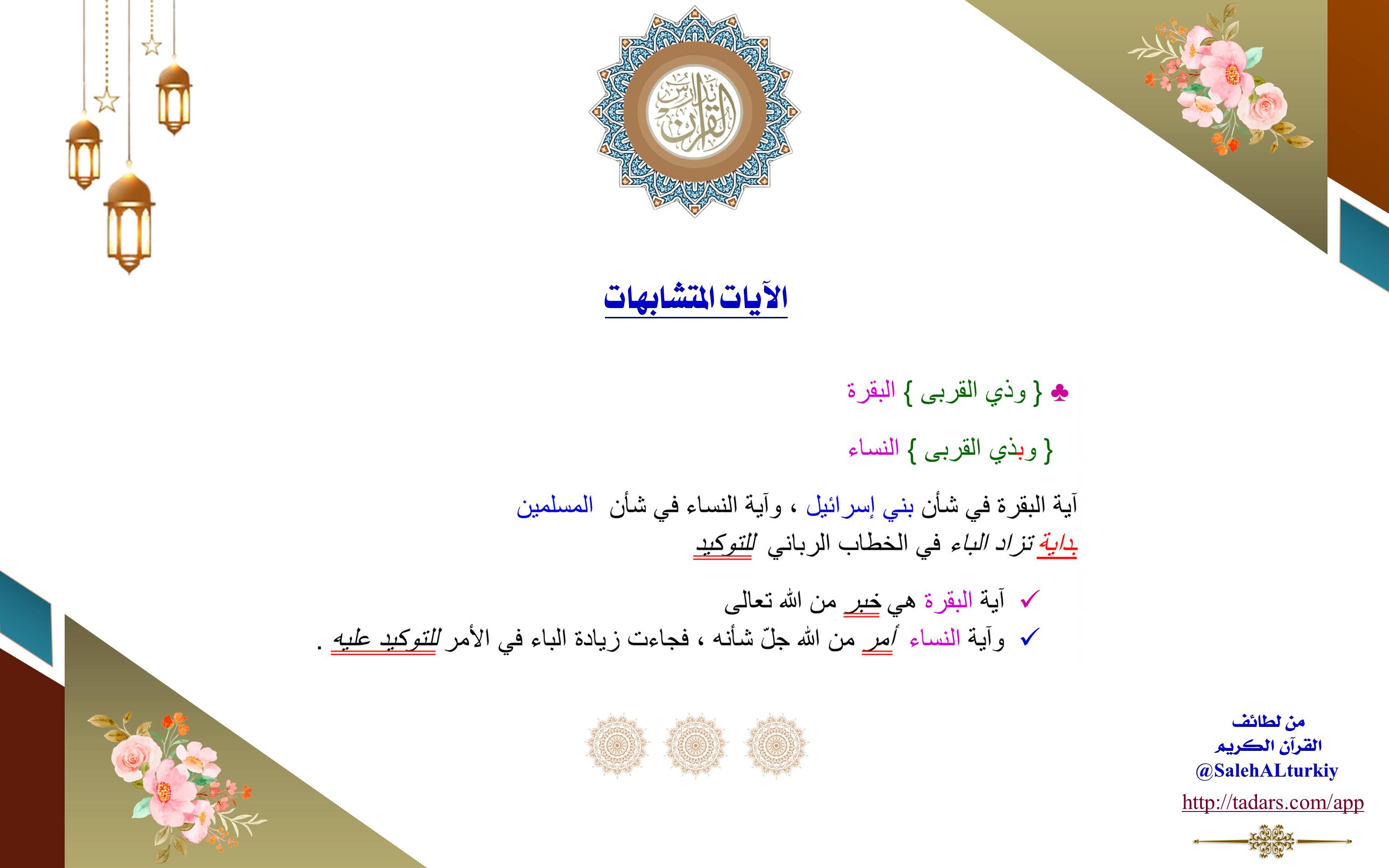 آية (البقرة) في شأن بني إسرائيل، وآية (النساء) في شأن المسلمين بداية تزاد الباء في الخطاب الرباني للتوكيد، آية (البقرة) هي خبر من الله تعالى، وآية (النساء) أمر من الله جلّ شأنه؛ فجاءت زيادة الباء في الأمر للتوكيد عليه.