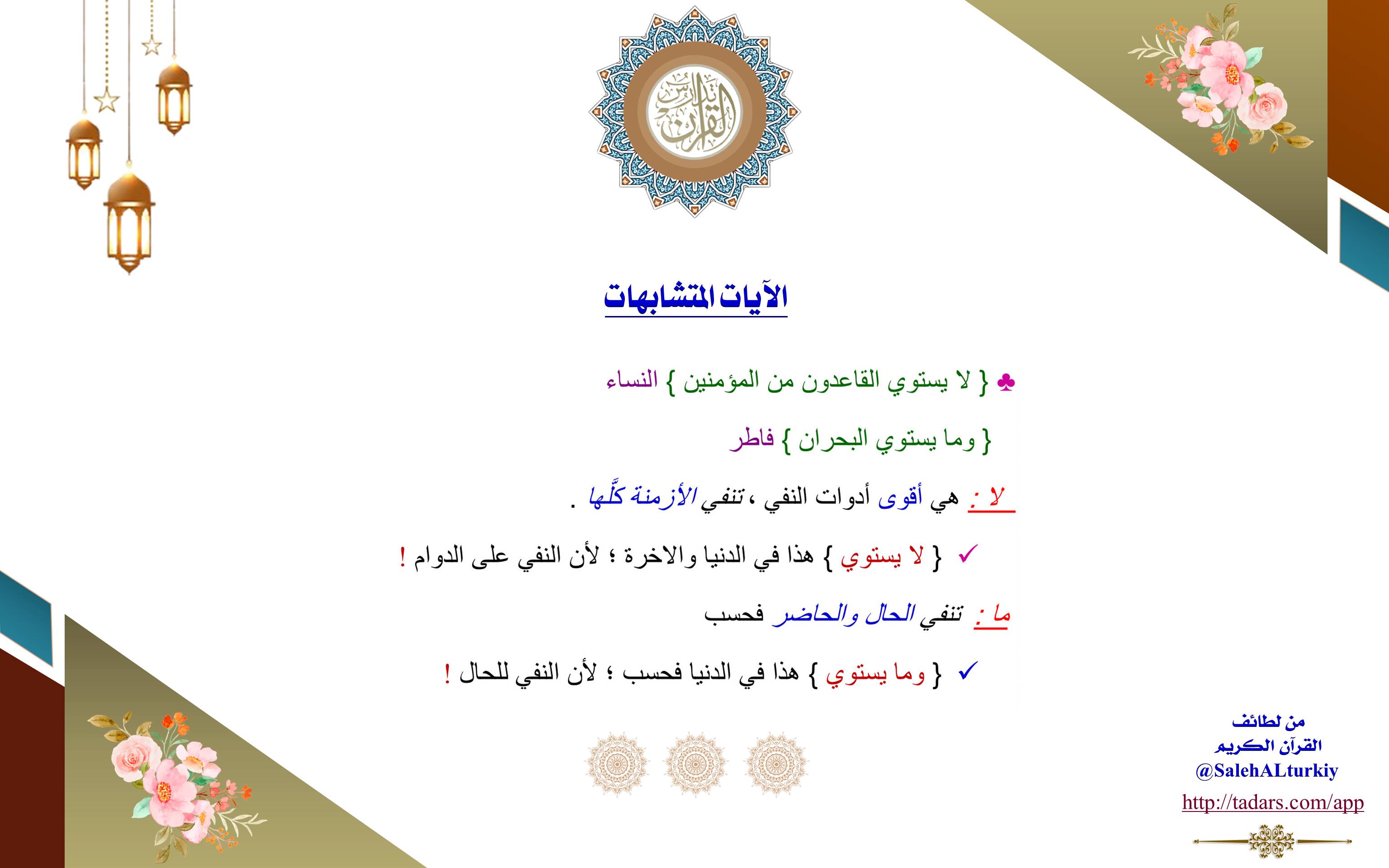 (ما): تنفي الحال والحاضر فحسب، (وما يستوي) هذا في الدنيا فحسب؛ لأن النفي للحال.