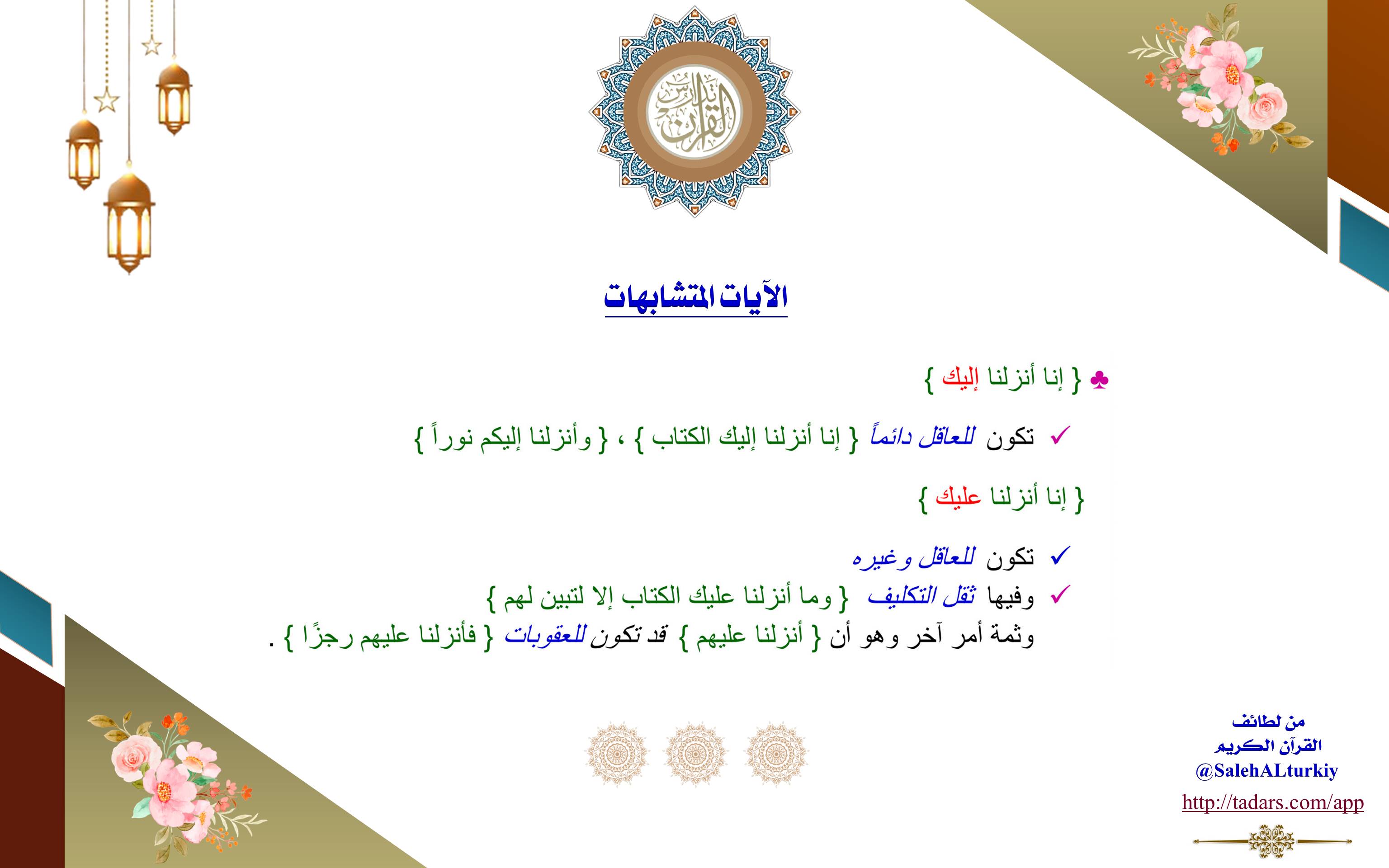 تكون للعاقل دائماً (إنا أنزلنا إليك الكتاب) ، (وأنزلنا إليكم نورا).