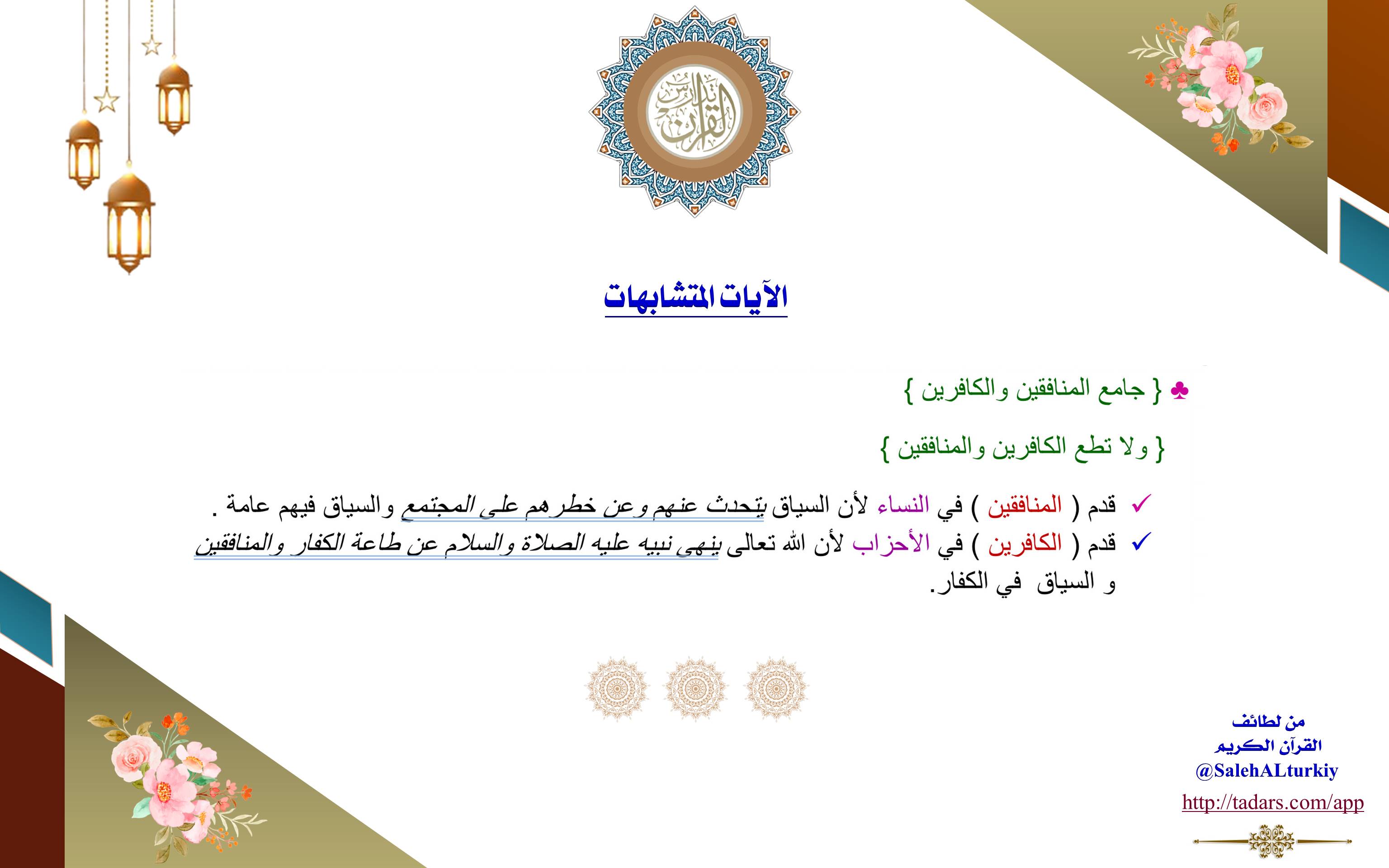 ﴿وَلَا تُطِعِ الْكَافِرِينَ وَالْمُنَافِقِينَ﴾
