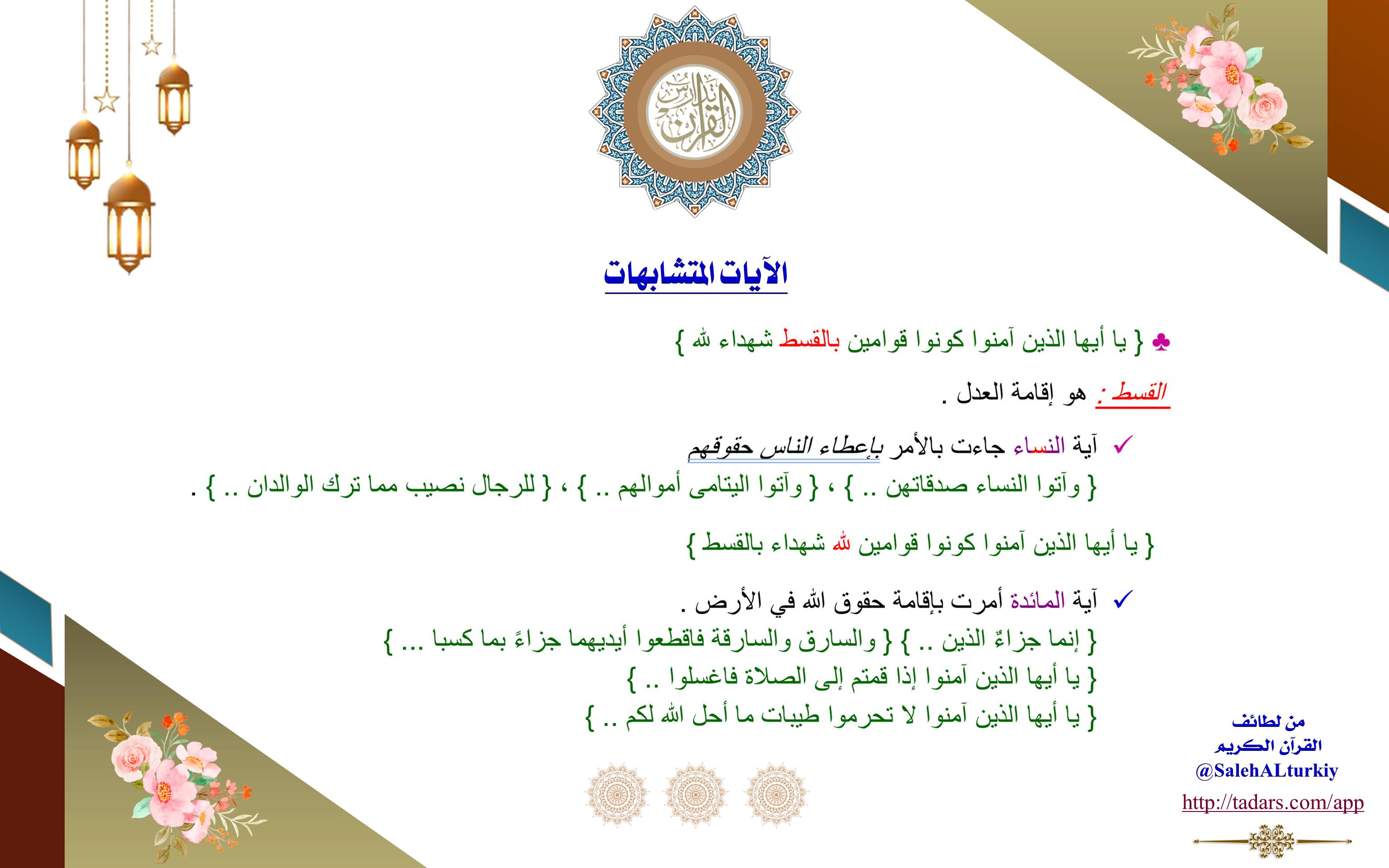 ﴿يَا أَيُّهَا الَّذِينَ آمَنُوا كُونُوا قَوَّامِينَ بِالْقِسْطِ شُهَدَاءَ لِلَّهِ﴾