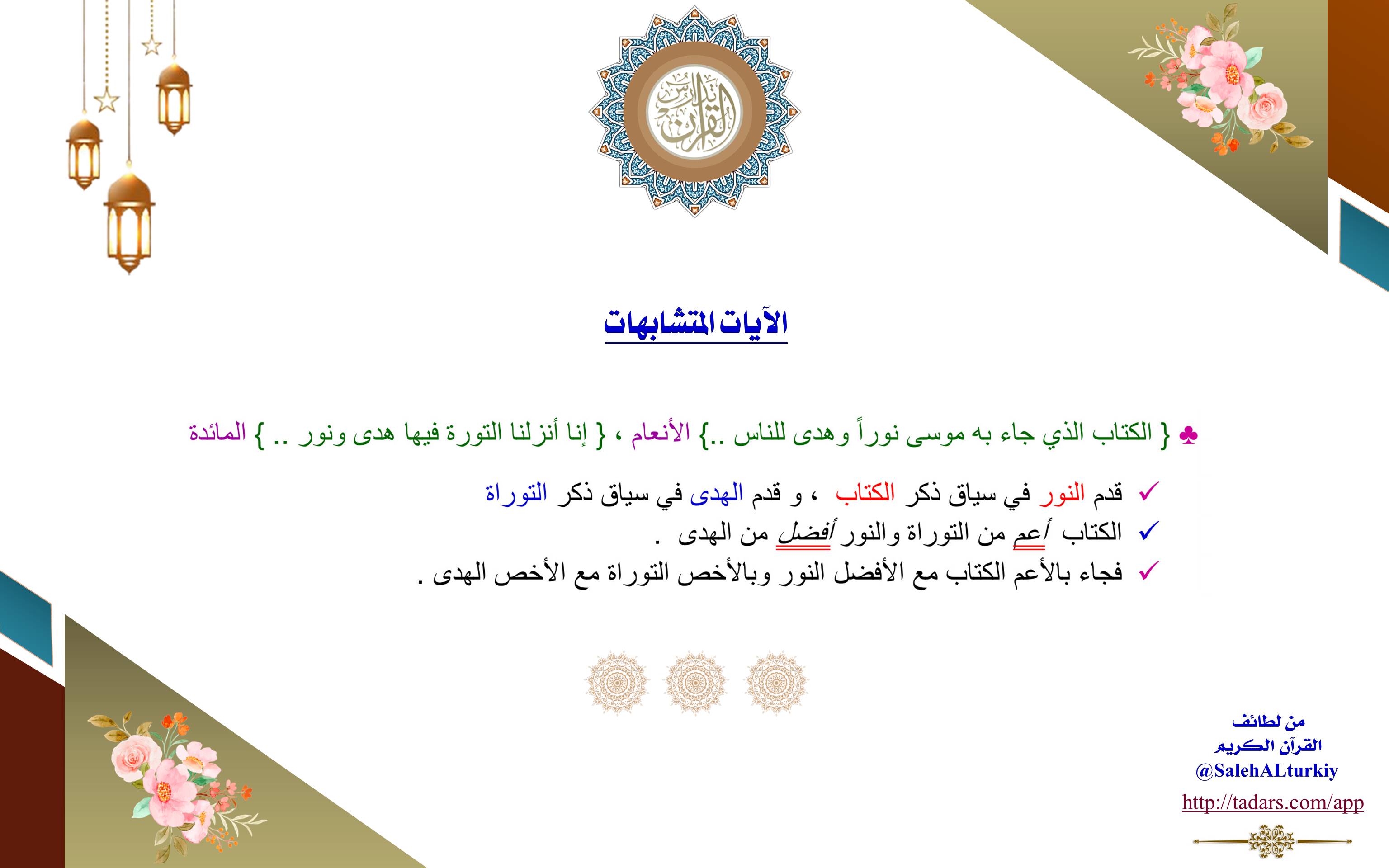 الكتاب أعم من التوراة والنور أفضل من الهدى.