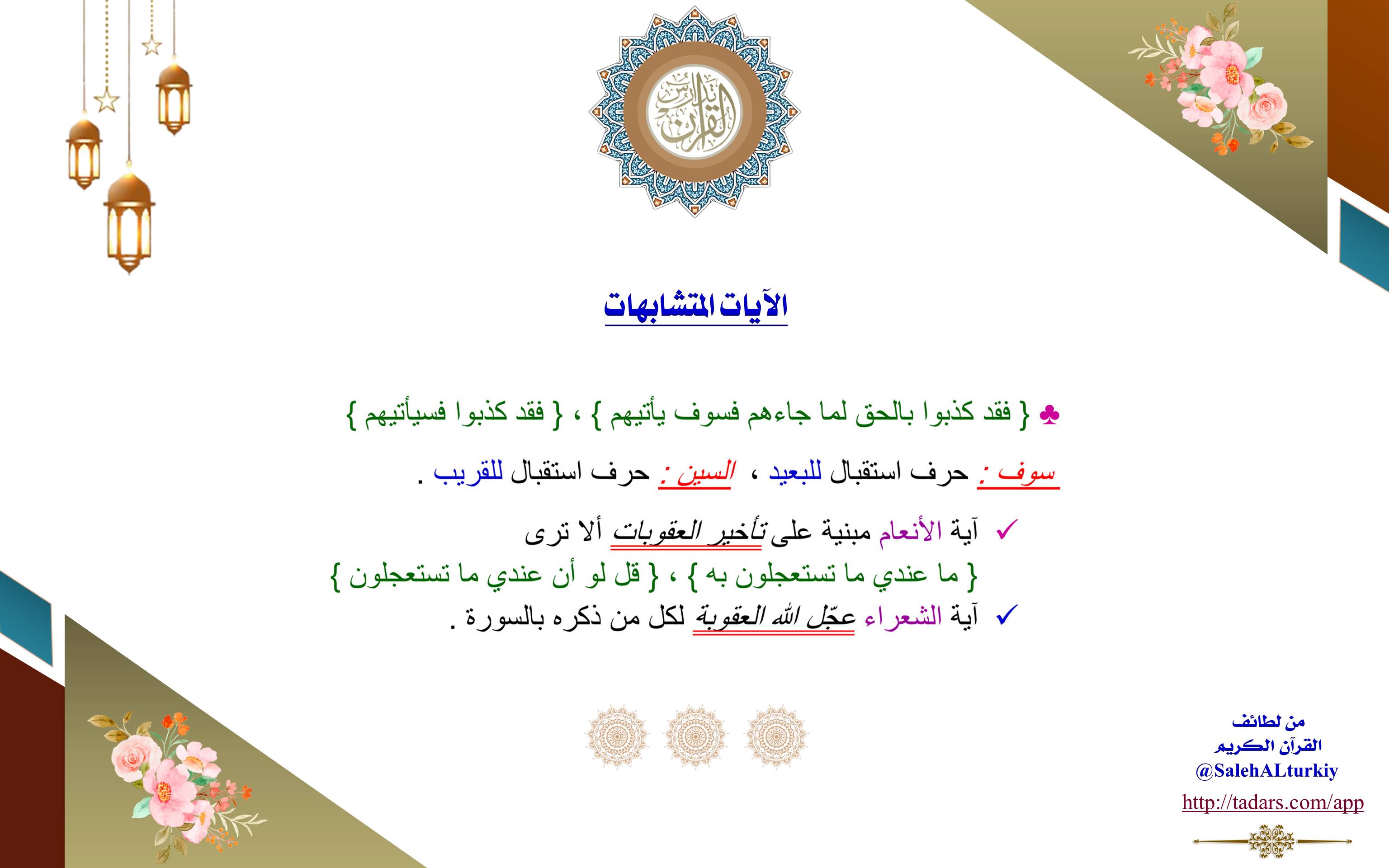 (سوف): حرف استقبال للبعيد، (السين): حرف استقبال للقريب.