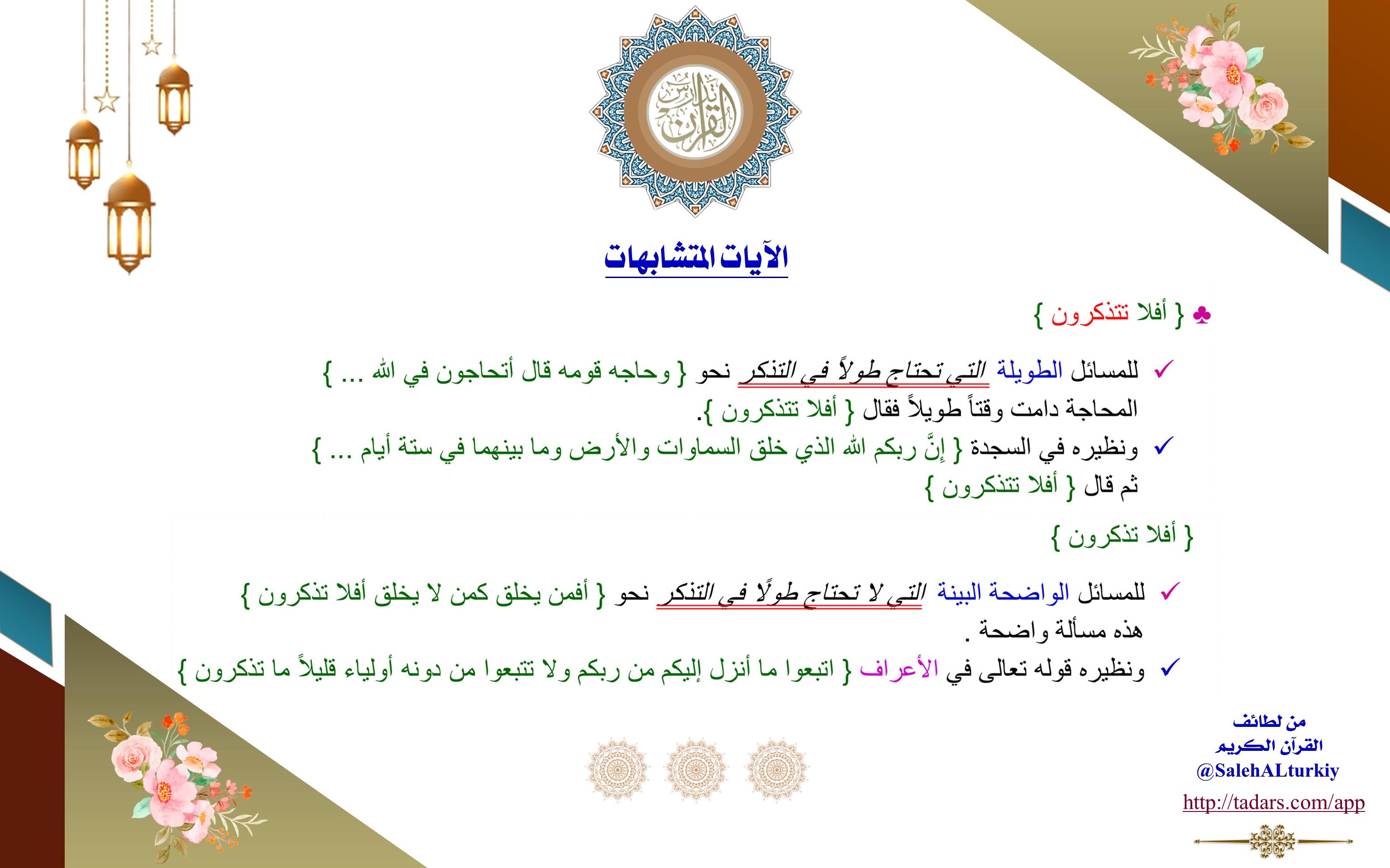 للمسائل الواضحة البينة التي لا تحتاج طولًا في التذكر نحو (أَفَمَن يَخْلُقُ كَمَن لَّا يَخْلُقُ أَفَلَا تَذَكَّرُونَ) هذه مسألة واضحة.