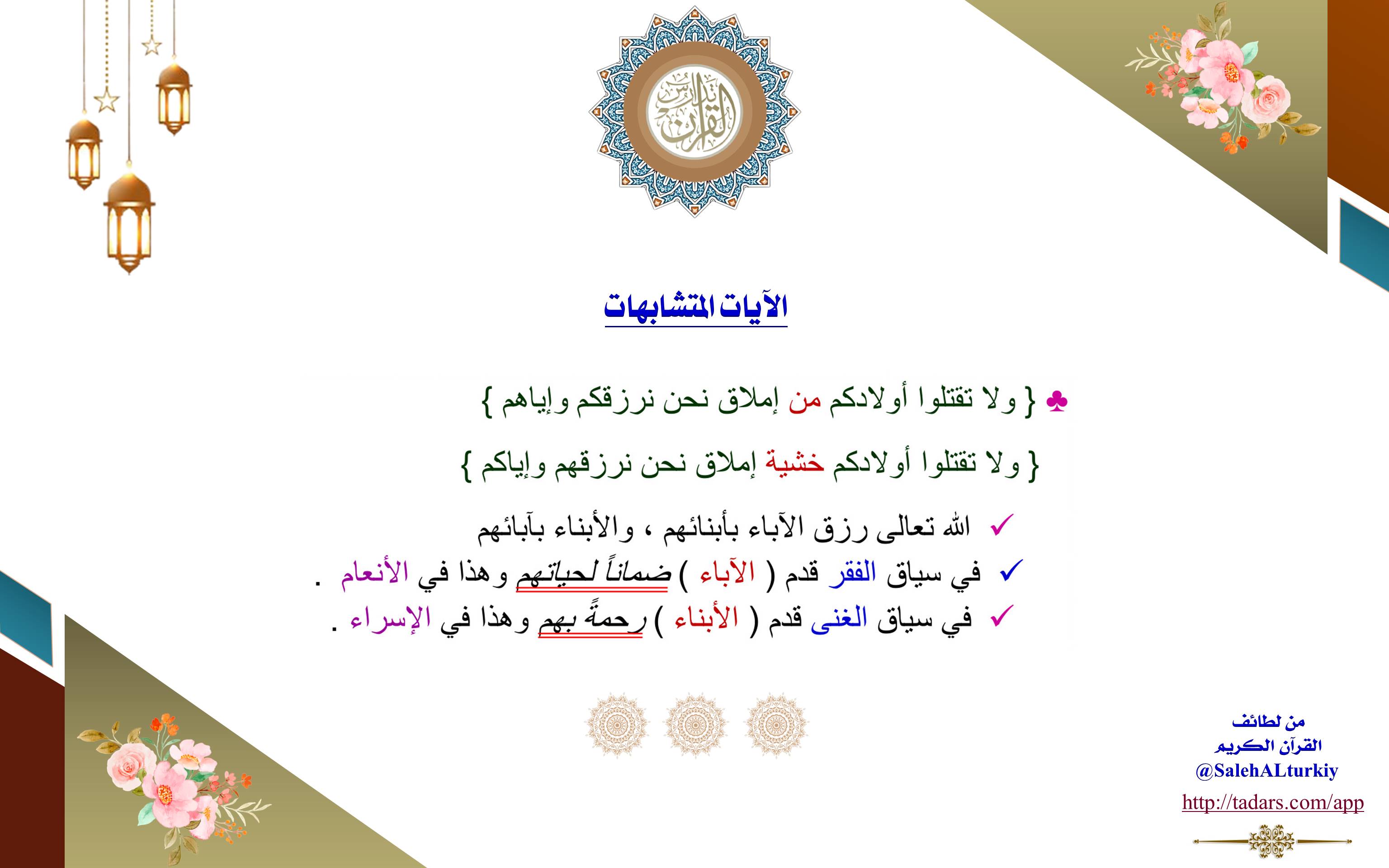 ﴿وَلَا تَقْتُلُوا أَوْلَادَكُمْ خَشْيَةَ إِمْلَاقٍ نَّحْنُ نَرْزُقُهُمْ وَإِيَّاكُمْ﴾