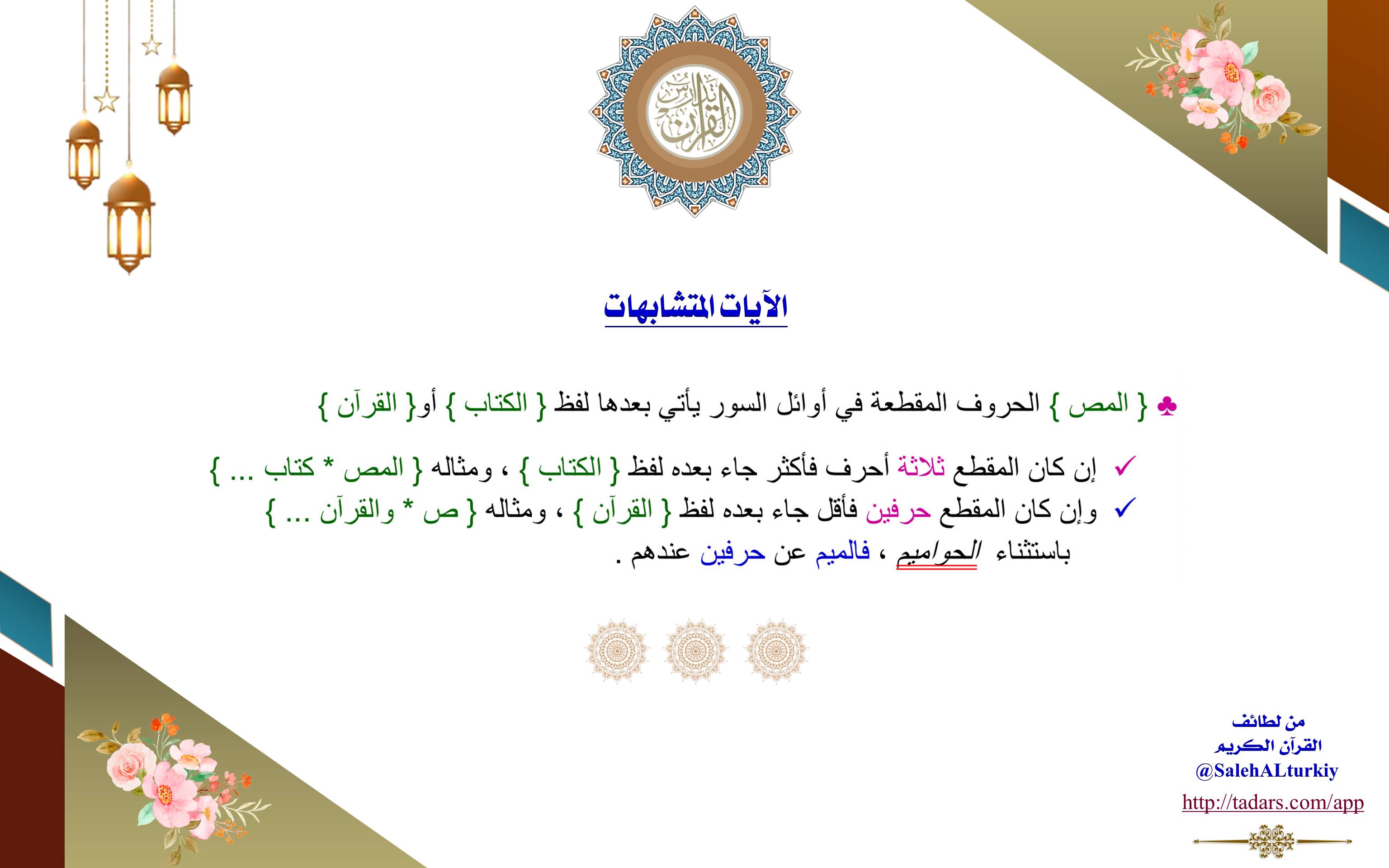 الحروف المقطعة في أوائل السور يأتي بعدها لفظ (الكتاب) أو (القرآن).