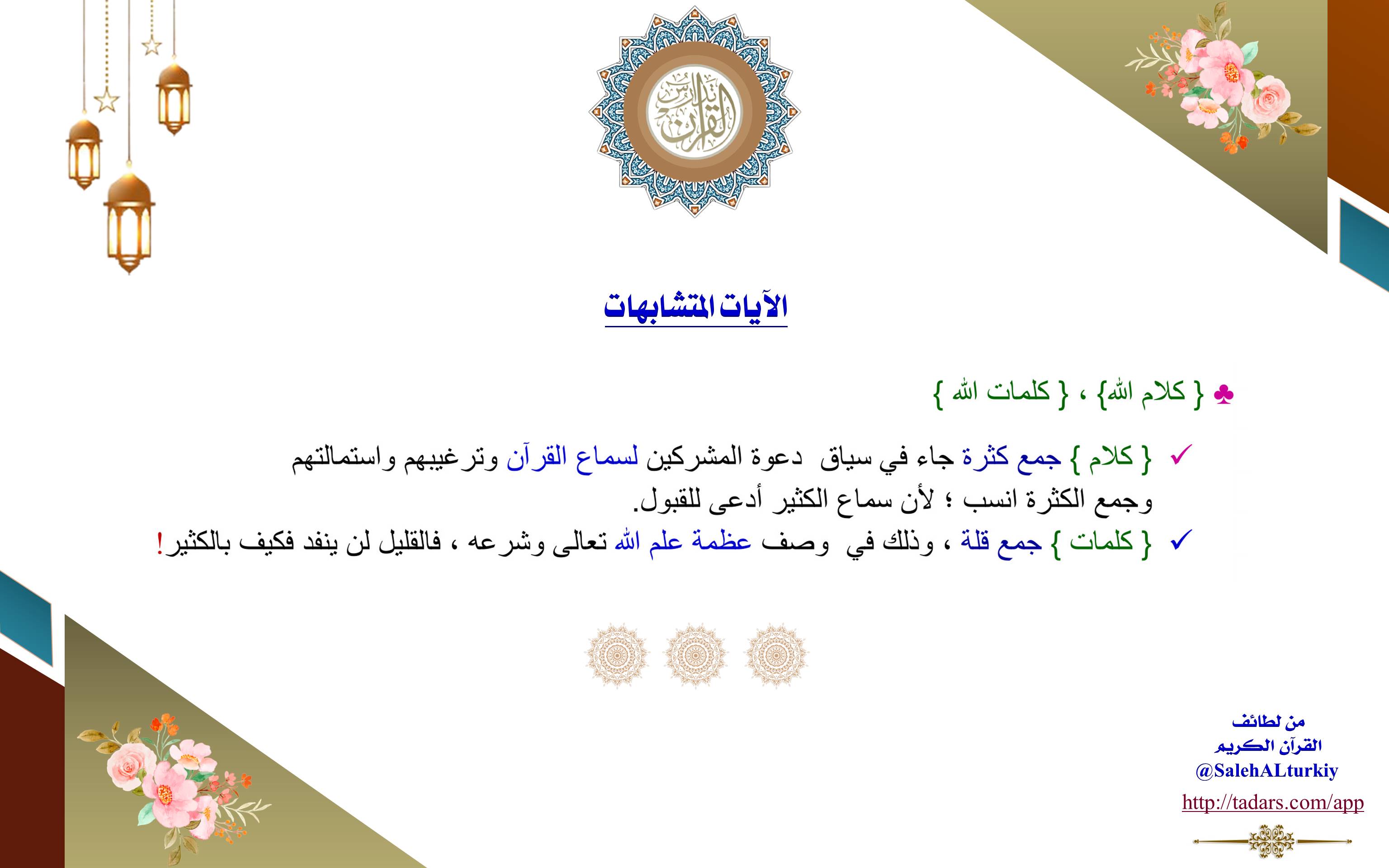 (كلمات) جمع قلة، وذلك في وصف عظمة علم الله تعالى وشرعه، فالقليل لن ينفد فكيف بالكثير!.