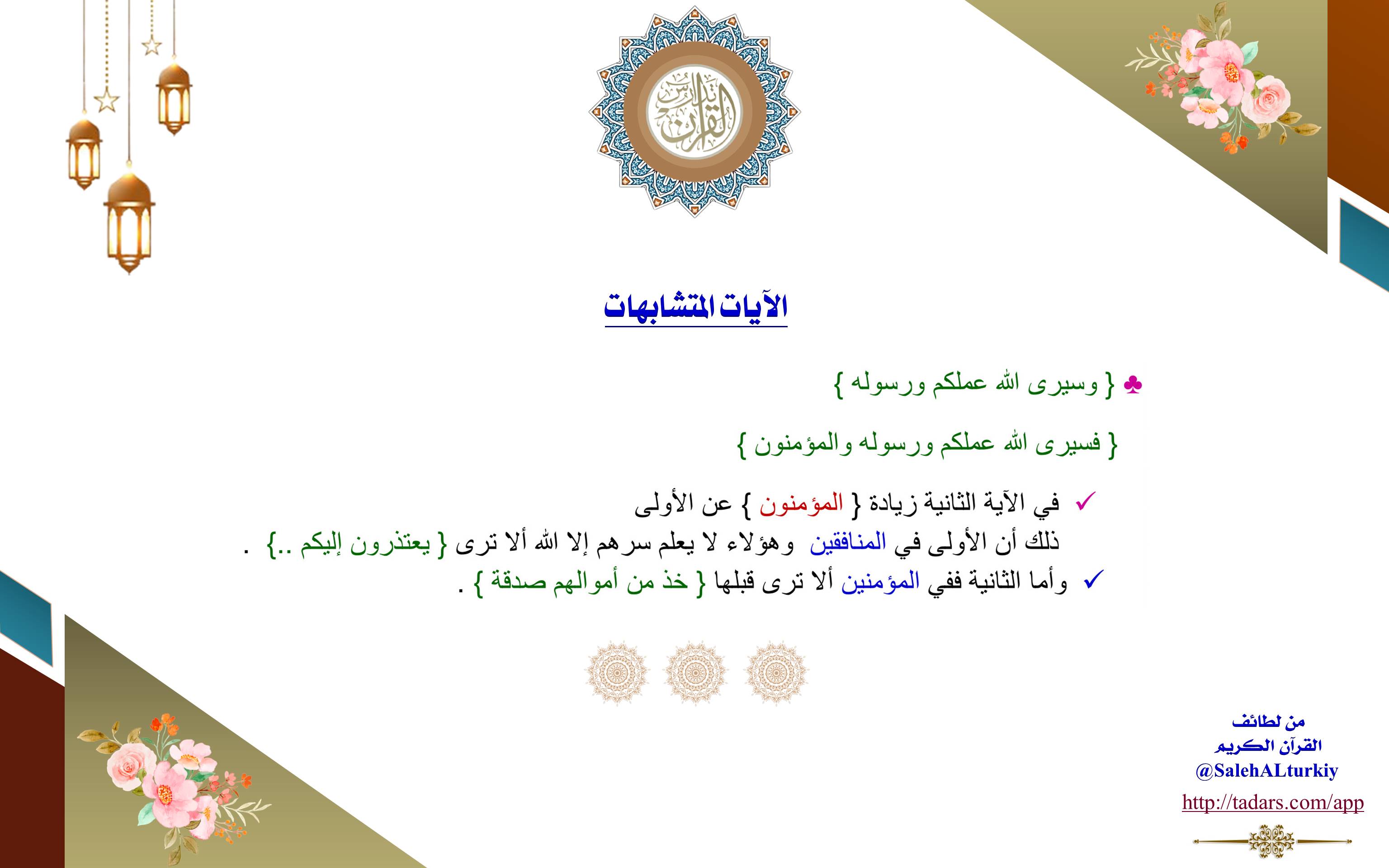في الآية الثانية زيادة (الْمُؤْمِنُونَ) عن الأولى، ذلك أن الأولى في المنافقين وهؤلاء لا يعلم سرهم إلا الله؛ ألا ترى: (يَعْتَذِرُونَ إِلَيْكُمْ..).
