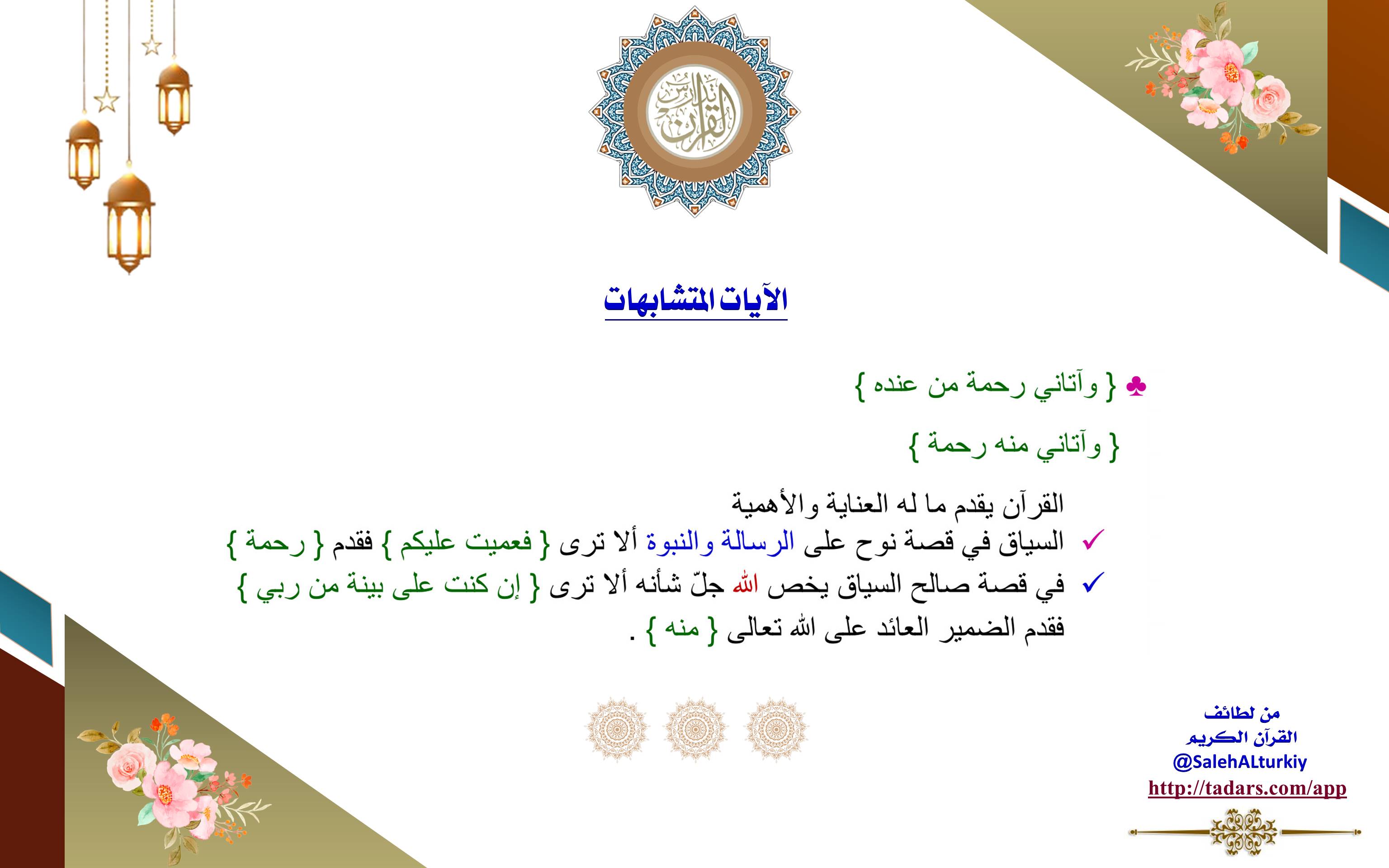 في قصة صالح السياق يخص (الله) جلّ شأنه ألا ترى (إِن كُنتُ عَلَى بَيِّنَةٍ مِّن رَّبِّي) فقدم الضمير العائد على الله تعالي (منه).