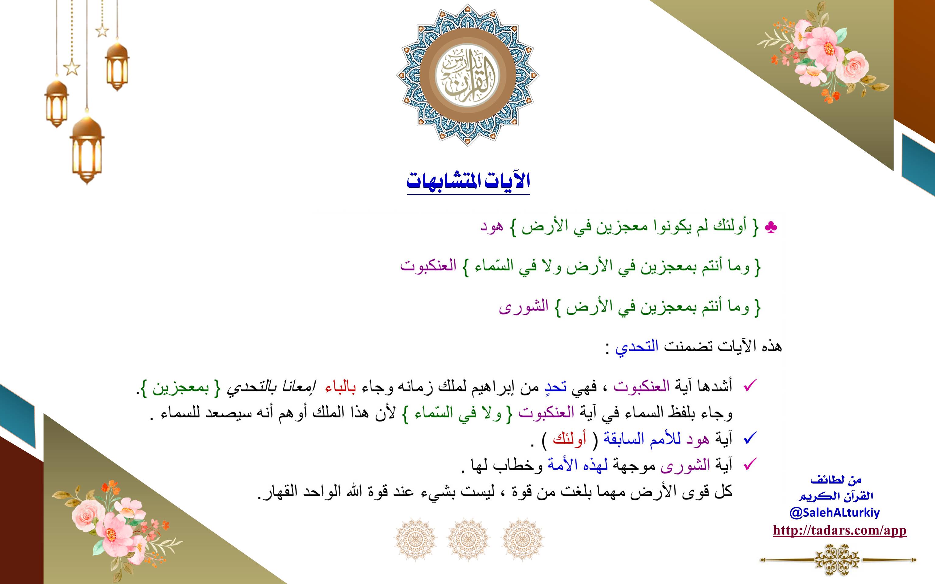 أشدها آية العنكبوت، فهي تحدٍ من إبراهيم لملك زمانه وجاء بالباء إمعانا بالتحدي (بِمُعْجِزِينَ).