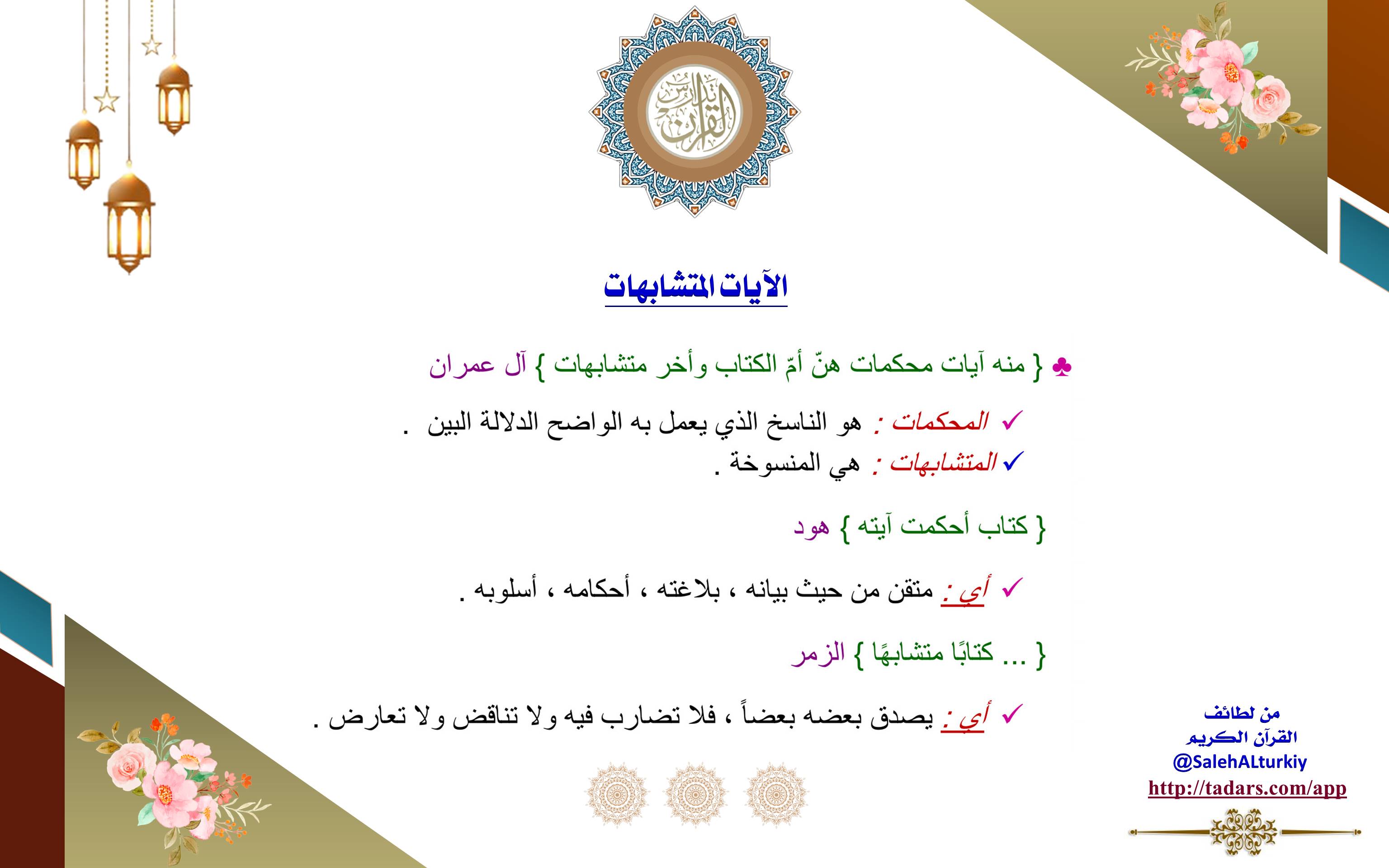 ﴿مِنْهُ آيَاتٌ مُّحْكَمَاتٌ هُنَّ أُمُّ الْكِتَابِ وَأُخَرُ مُتَشَابِهَاتٌ﴾