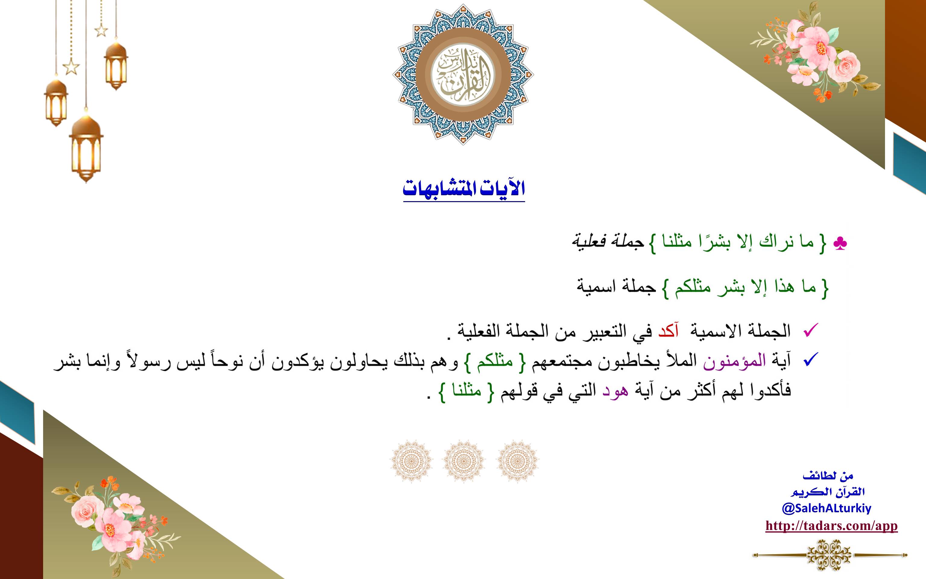 {ما نراك إلا بشرًا مثلنا} جملة فعلية ، {ما هذا إلا بشر مثلكم} جملة اسمية.