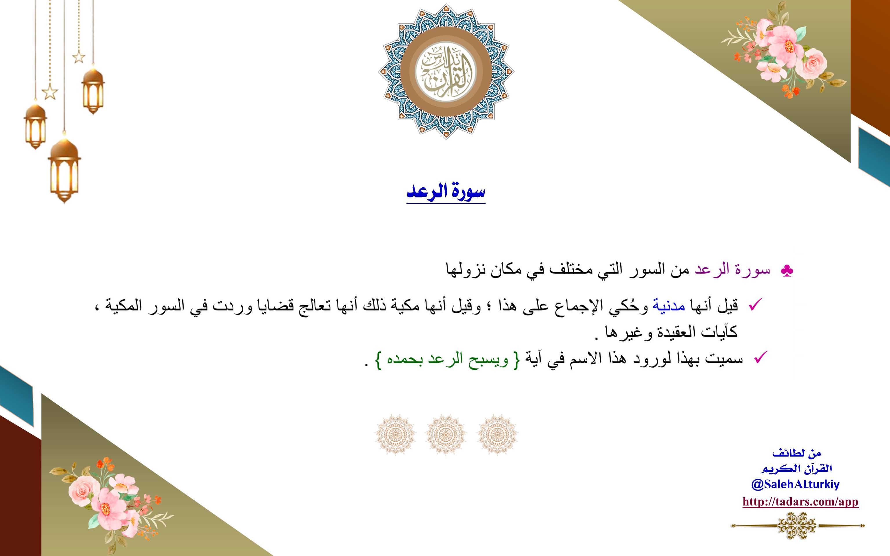 سورة الرعد من السور التي مختلف في مكان نزولها.
