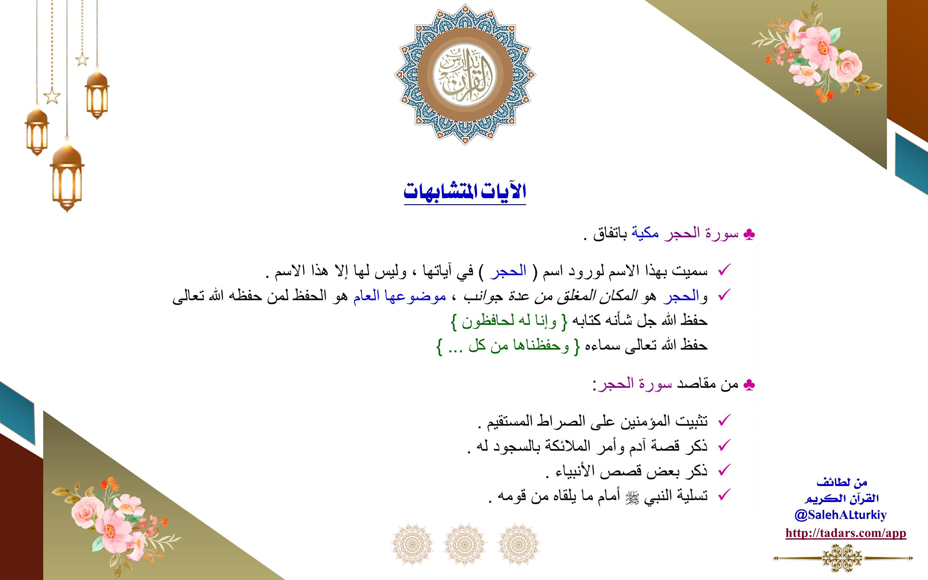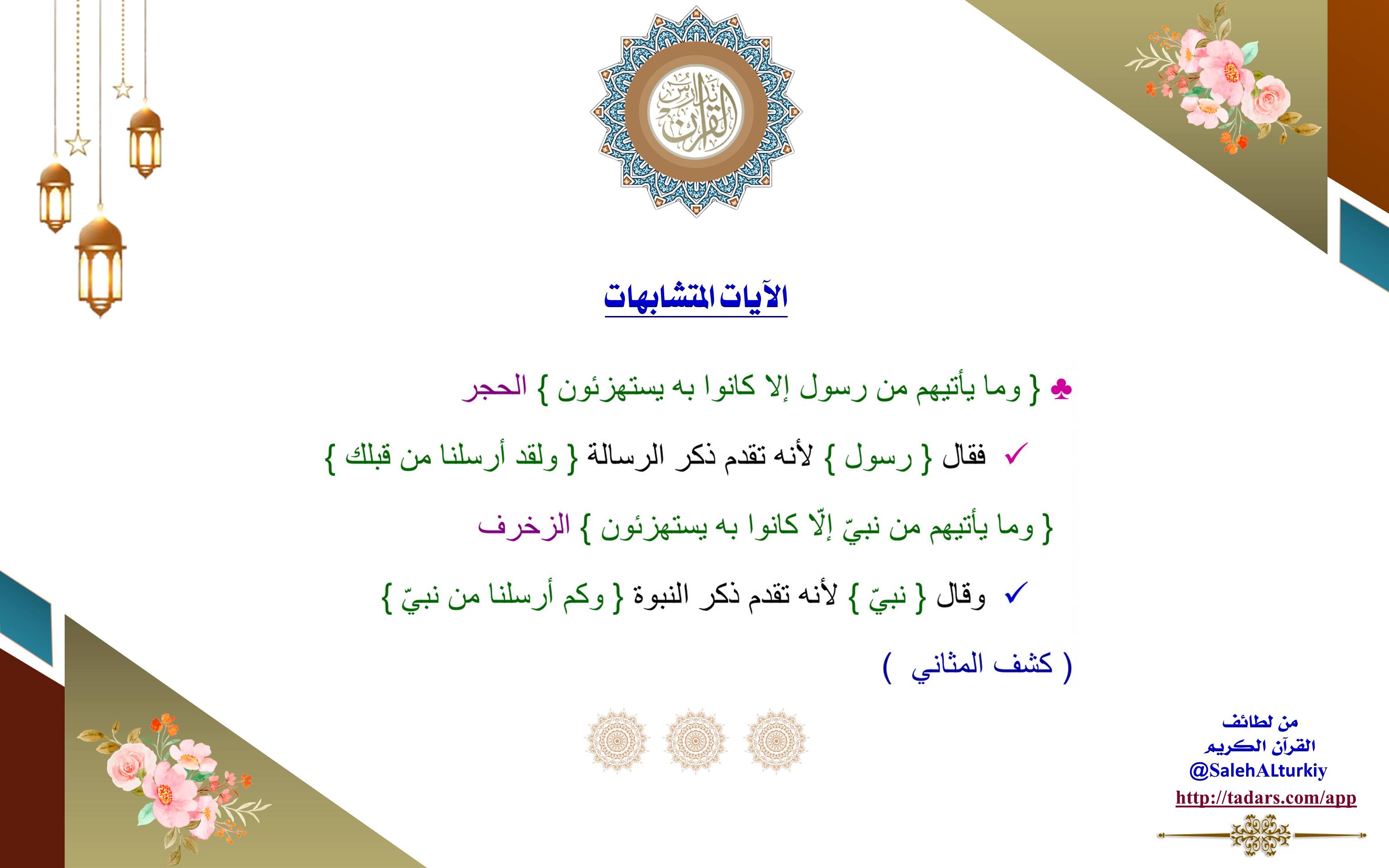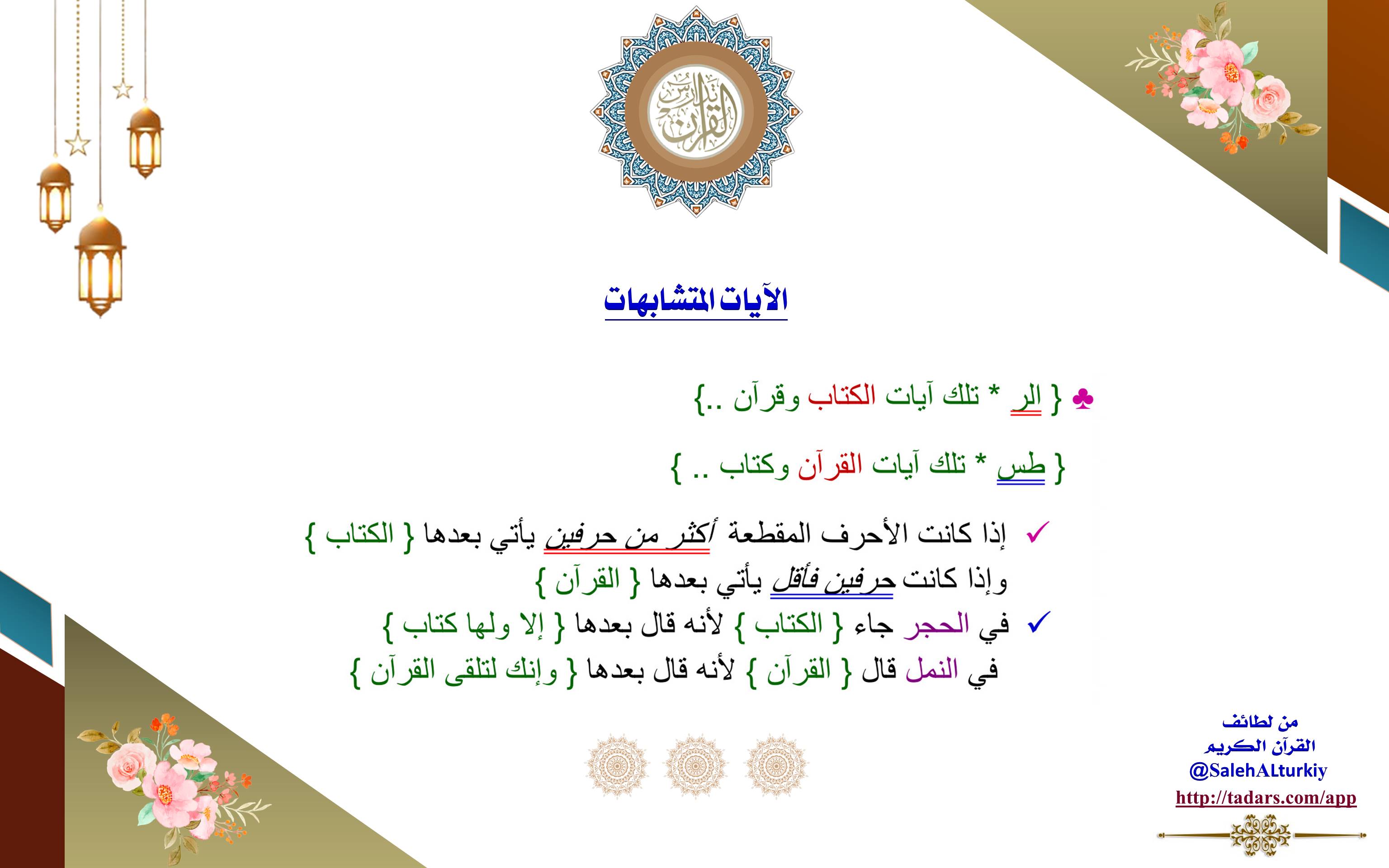 ﴿تِلْكَ آيَاتُ الْقُرْآنِ وَكِتَابٍ مُّبِينٍ﴾