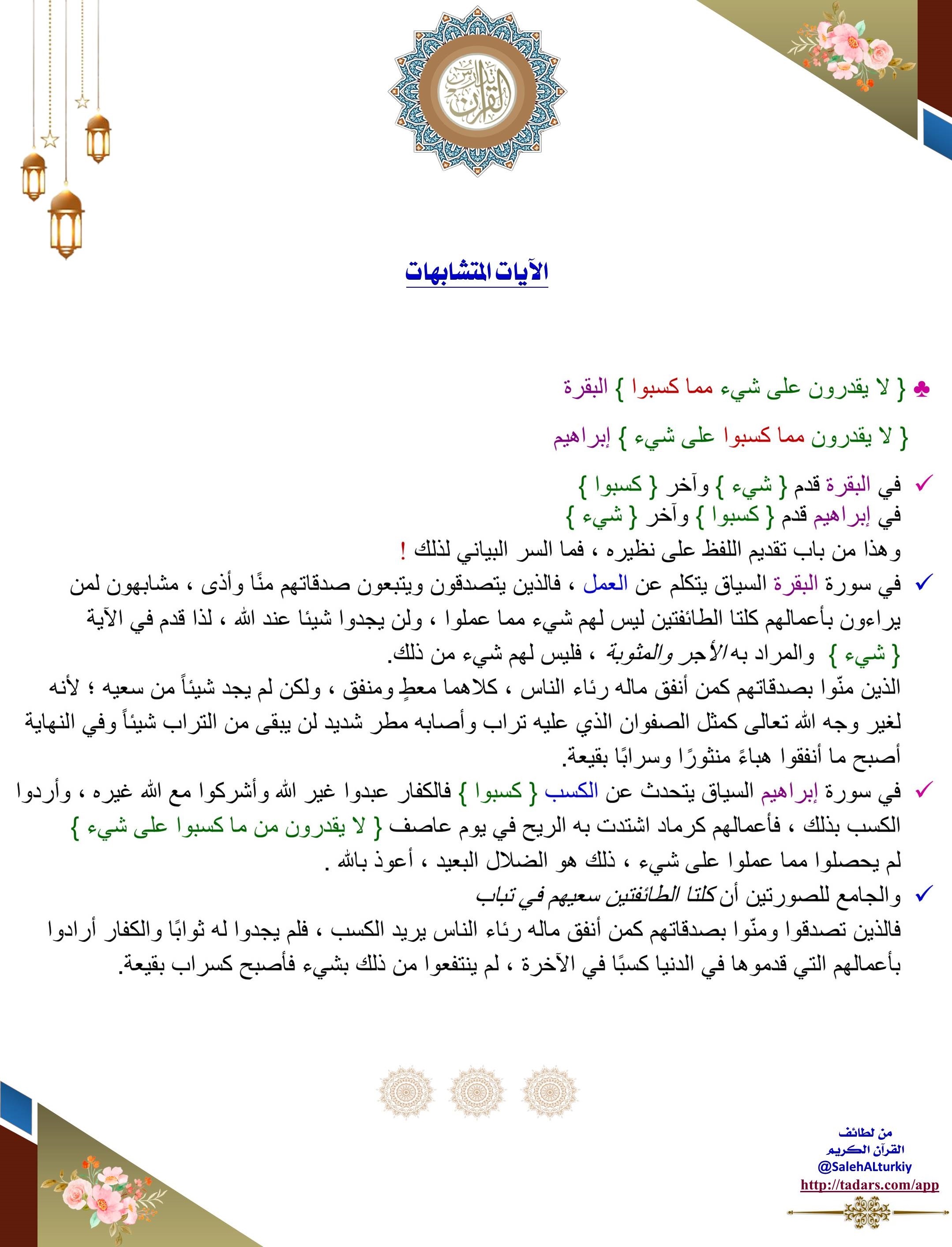 في إبراهيم قدم {كسبوا} وآخر {شيء}.