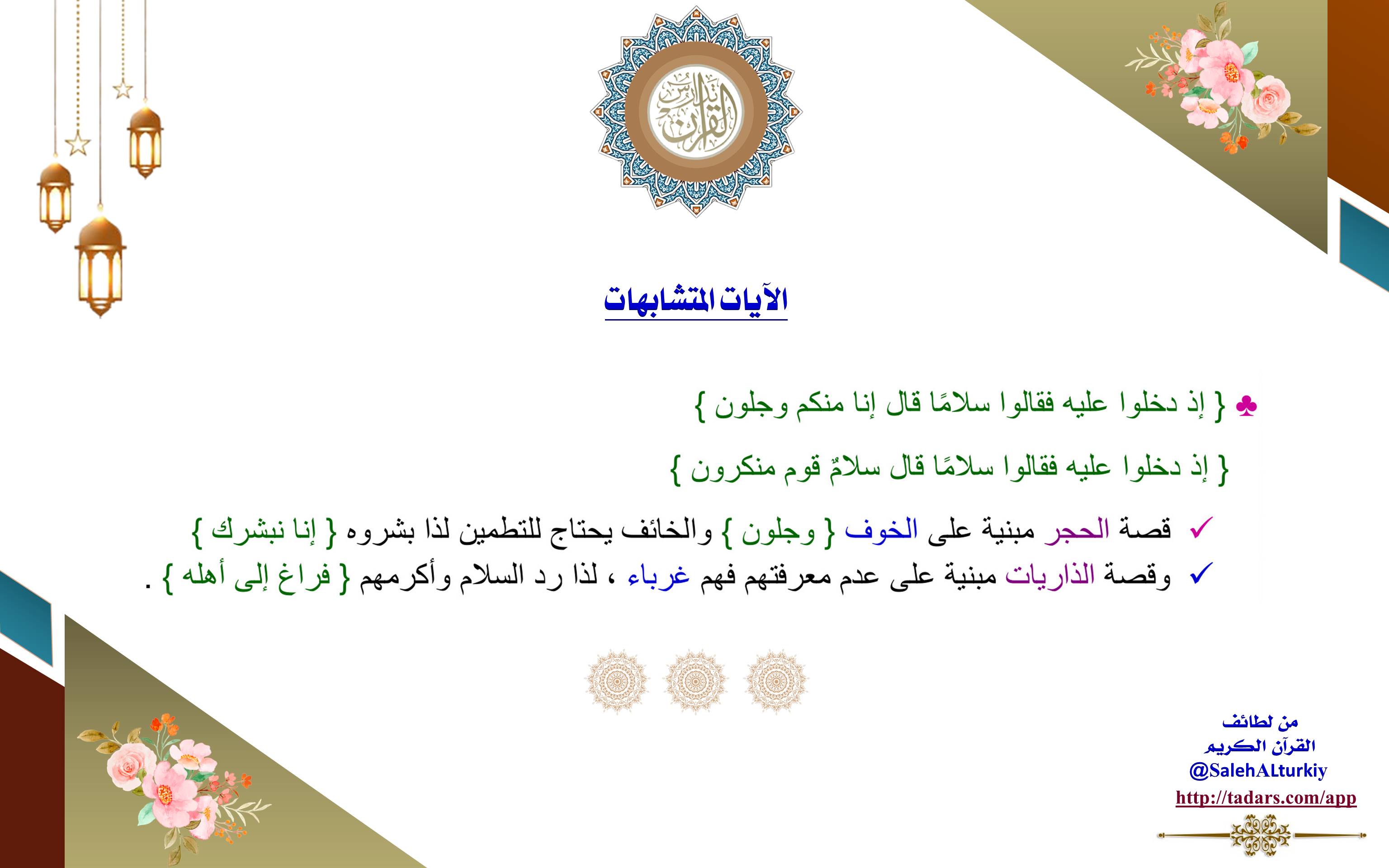 ﴿إِذْ دَخَلُوا عَلَيْهِ فَقَالُوا سَلَامًا قَالَ سَلَامٌ قَوْمٌ مُّنكَرُونَ﴾