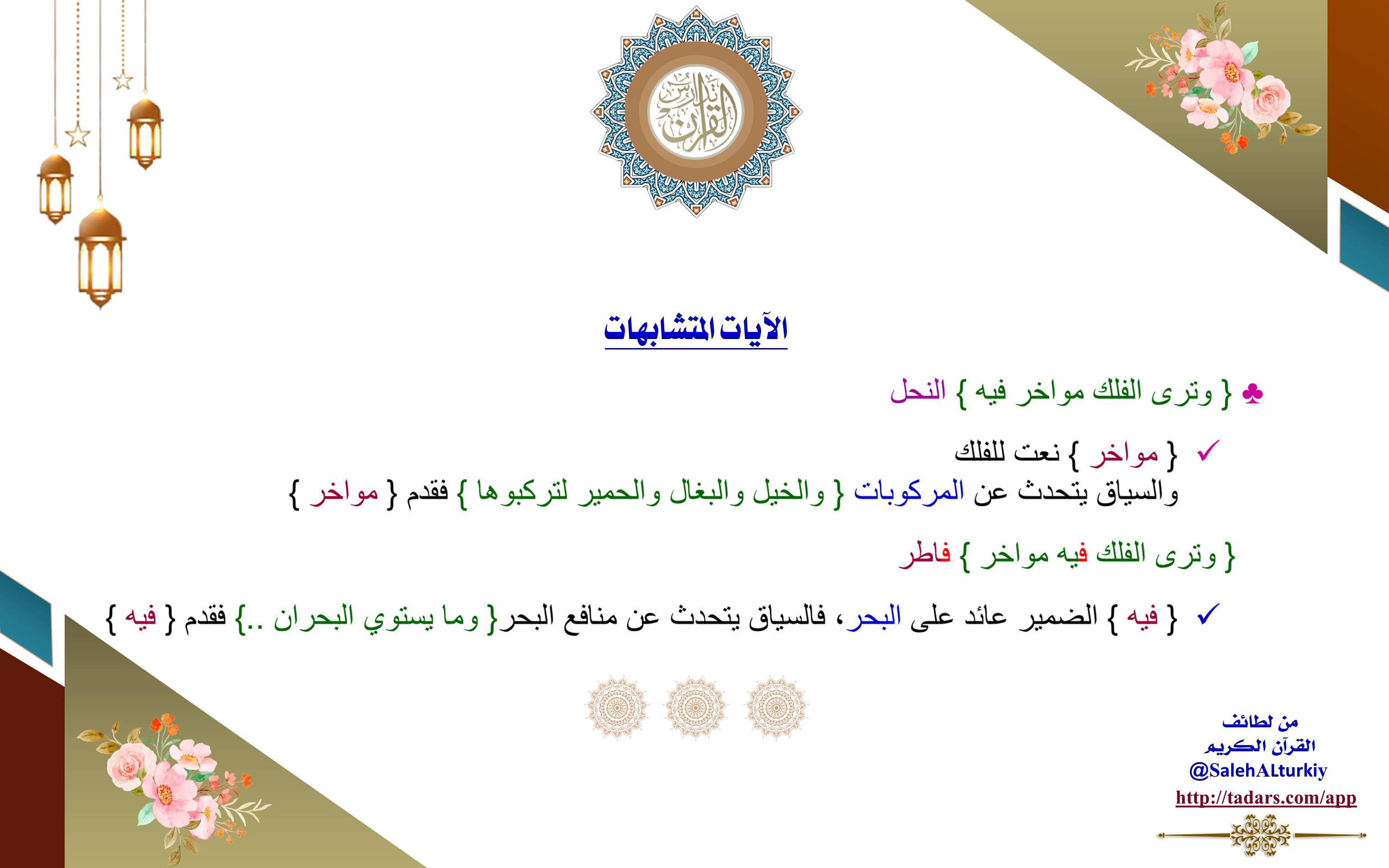 (مواخر) نعت للفلك، والسياق يتحدث عن المركوبات (وَالْخَيْلَ وَالْبِغَالَ وَالْحَمِيرَ لِتَرْكَبُوهَا) فقدم (مواخر).