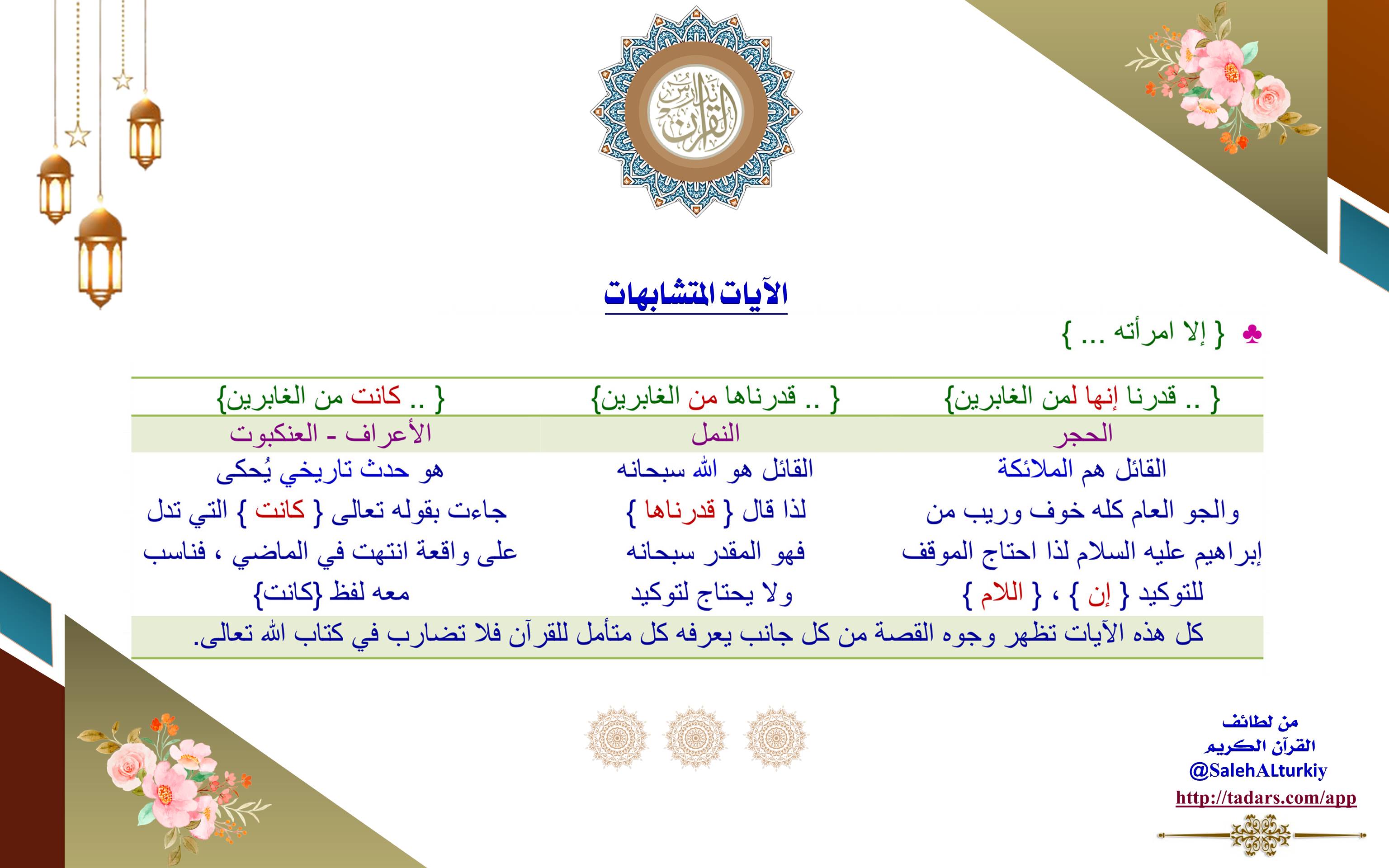 ﴿إِلَّا امْرَأَتَهُ قَدَّرْنَا إِنَّهَا لَمِنَ الْغَابِرِينَ﴾