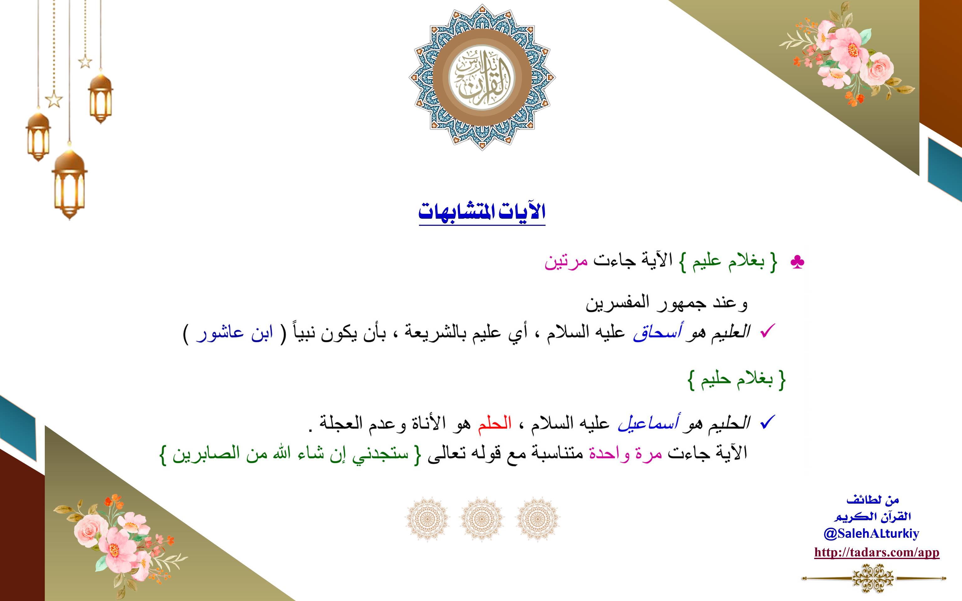 الحليم هو إسماعيل عليه السلام، الحلم هو الأناة وعدم العجلة.