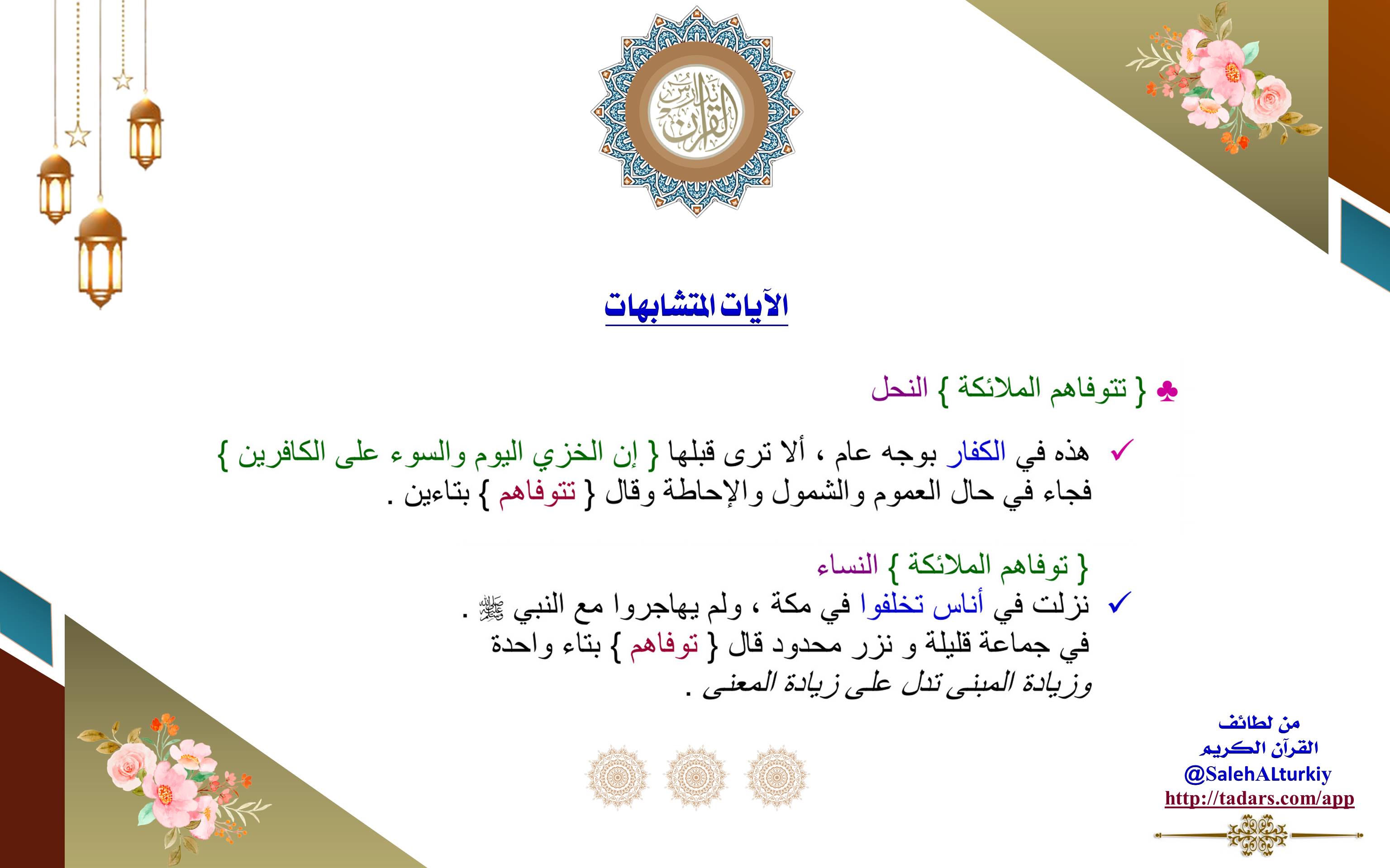 هذه في الكفار بوجه عام؛ ألا ترى قبلها (إِنَّ الْخِزْيَ الْيَوْمَ وَالسُّوءَ عَلَى الْكَافِرِينَ) فجاء في حال العموم والشمول والإحاطة وقال (تتوفاهم) بتاءين.