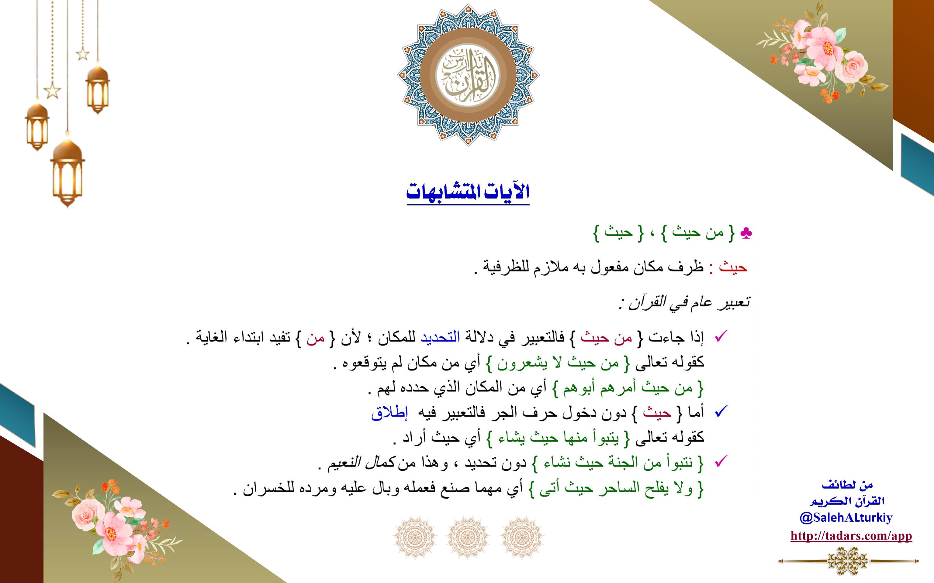 إذا جاءت {من حيث} فالتعبير في دلالة التحديد للمكان؛ لأن {من} تفيد ابتداء الغاية.